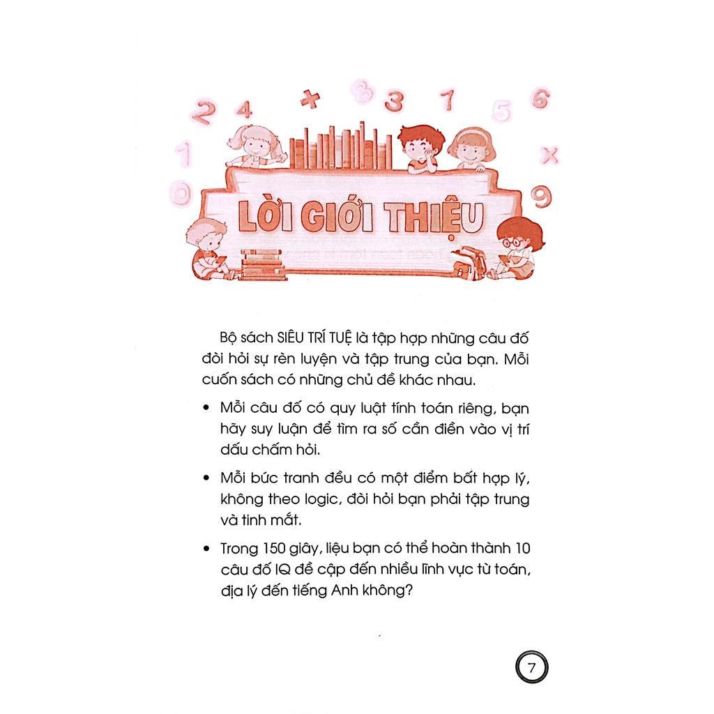 Hack Não - Siêu Trí Tuệ: Tư Duy Thông Minh Và Nhanh Trí + Khả Năng Sinh Tồn + Câu Đố Suy Luận Kiểm Tra IQ + Thử Tài Thám Tử Bộ sách SIÊU TRÍ TUỆ là tập hợp những câu đố đòi hỏi sự rèn luyện và tập trung của bạn. Mỗi cuốn sách có những chủ đề khác nhau. - Mỗi câu đố có quy luật tính toán riêng, bạn hãy suy luận để tìm ra số cần điền vào vị trí dấu chấm hỏi. - Mỗi bức tranh đều có một điểm bất hợp lý, không theo logic, đòi hỏi bạn phải tập trung và tinh mắt. - Trong 150 giây, liệu bạn có thể hoàn thành 10 câu đố IQ đề cập đến nhiều lĩnh vực từ toán, địa lý đến tiếng Anh không? - Bạn cần vận dụng khả năng tính toán, tư duy logic để tìm ra quy luật và điền số còn thiếu vào dấu chấm hỏi trong vòng một phút - Ban cần quan sát, suy luận logic để tìm quy luật của dãy hình, dãy số đã cho để đưa ra đáp án đúng. Tập trung hoàn toàn tâm trí cho việc...