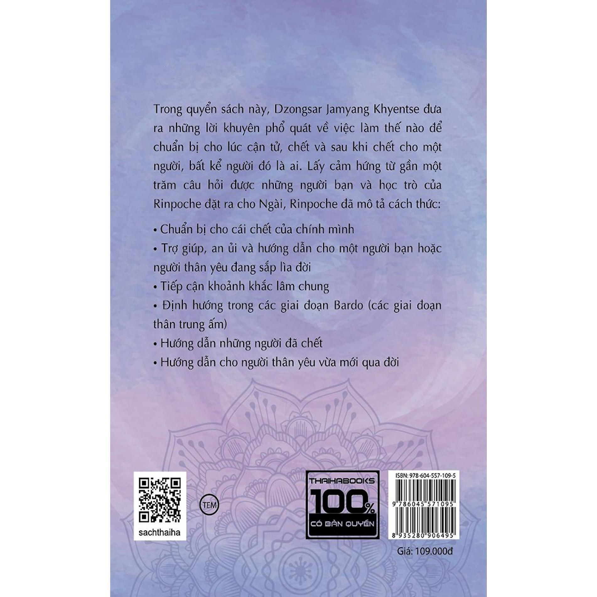Thông tin đối với quá trình hấp hối, chết và những gì xảy ra sau khi chết được đề cập trong quyển sách này là sự trình bày rất đơn giản về một truyền thống cụ thể và cổ xưa trong số những giáo lý của đạo Phật, đã được truyền giữ qua một mạng mạch lâu dài bởi những nhà tư tưởng Phật giáo lỗi lạc, mà mỗi vị trong số họ đã dành những chặng đường khá lâu để nghiên cứu về cái chết và tiến trình chết chi tiết đến từng phút, và ở mọi góc độ. Những lời khuyên của họ có thể đặc biệt hữu dụng đối với Phật tử hoặc những ai được thu hút bởi giáo lý của Đức Phật, nhưng cũng phù hợp ở mức độ tương đương đối với bất kỳ ai – bởi vì cuối cùng, ai rồi cũng sẽ chết. Như vậy, dù cho có là Phật tử hay không, nếu bạn là người có tâm trí rộng mở và tò mò, hoặc thường suy tư về cái chết của chính mình hay của một người thân yêu nào đó, thì có thể bạn sẽ tìm thấy được điều hữu ích tương tự trong những trang sách này.
