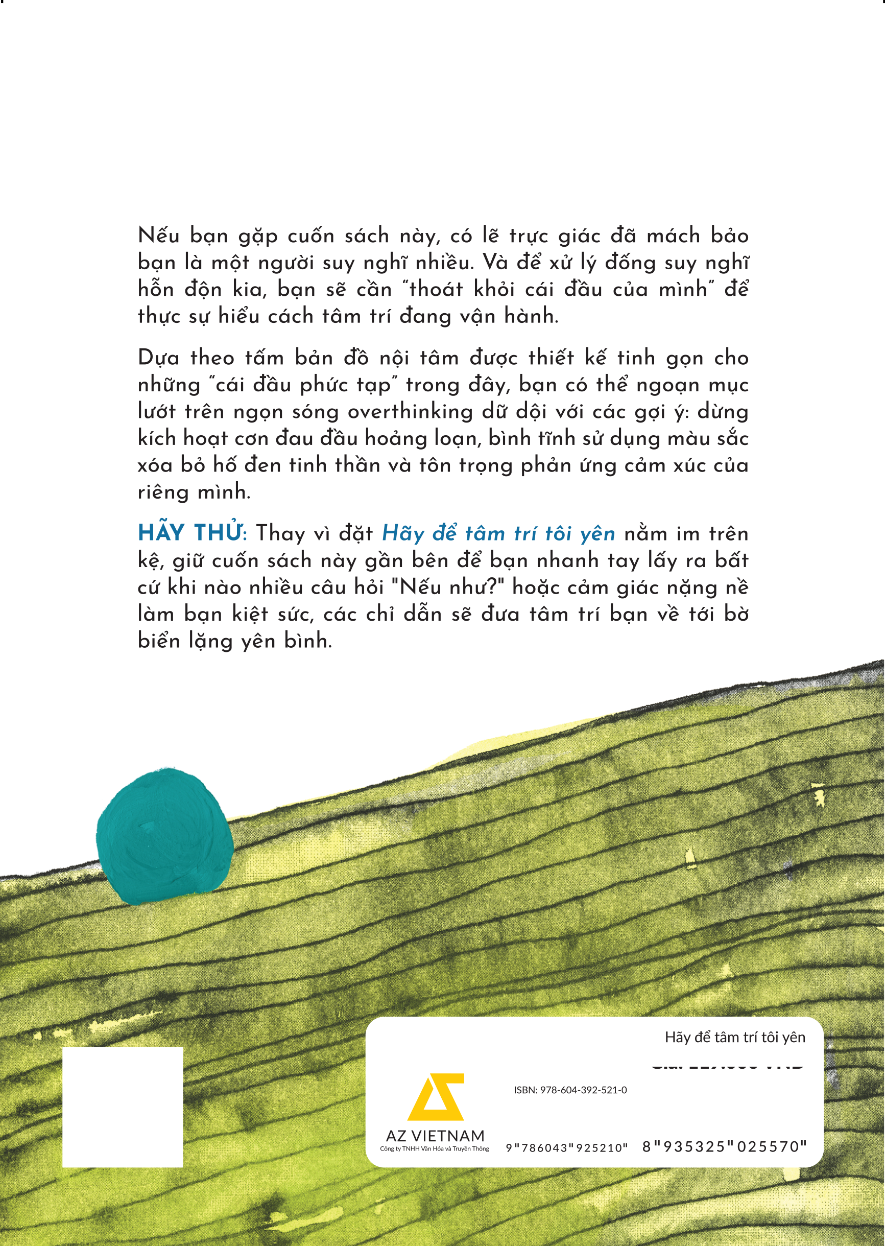 Hãy Để Tâm Trí Tôi Yên - Hướng Dẫn Loại Bỏ “Suy Nghĩ Tiêu Cực” Cho Người Dễ Lo Âu Cung cấp các kỹ thuật xoa dịu để hiểu được sự lo lắng và vượt qua những cạm bẫy của việc suy nghĩ quá mức. H...