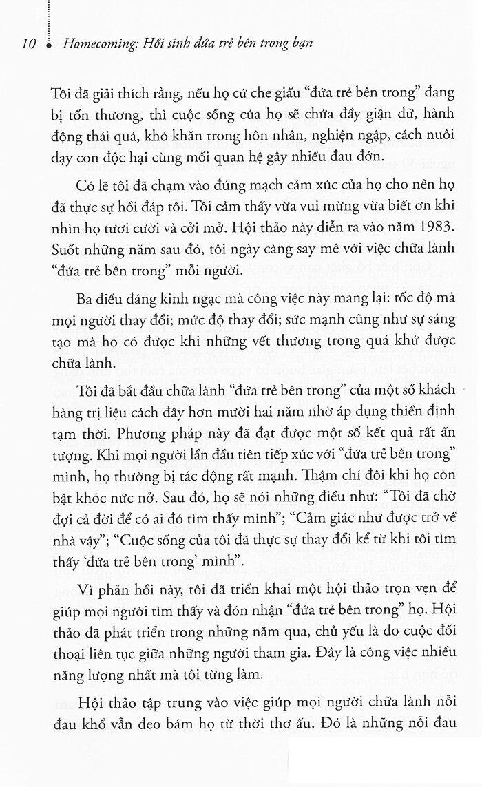 Homecoming - Hồi Sinh Đứa Trẻ Bên Trong Bạn “Ba điều đáng kinh ngạc mà công việc chữa lành đứa trẻ bên trong mang lại: tốc độ mà mọi người thay đổi; mức độ thay đổi; sức mạnh cũng như sự sán...