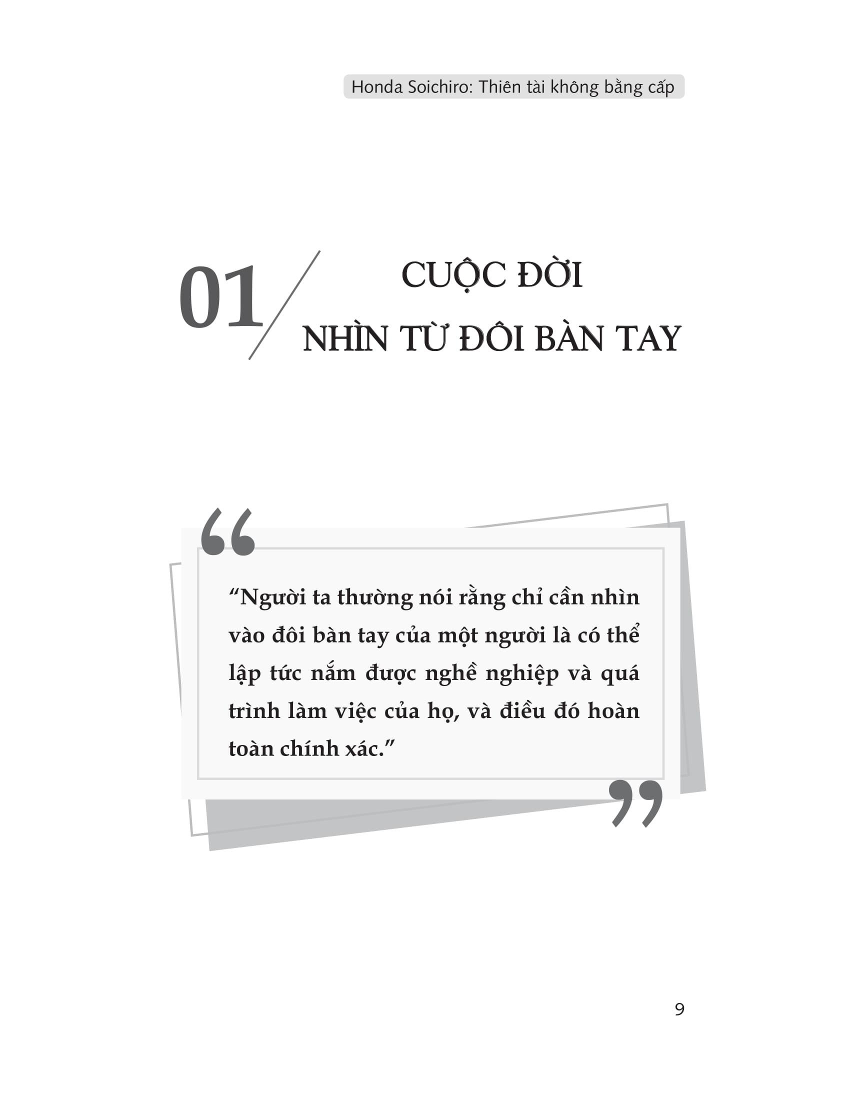 Cuốn sách này sẽ đào sâu vào tâm trí của Soichiro, giúp bạn thấu hiểu được cách tư duy của một thiên tài, từ đó nắm trong tay một chiếc “la bàn” để chỉ lối tới thành công.”