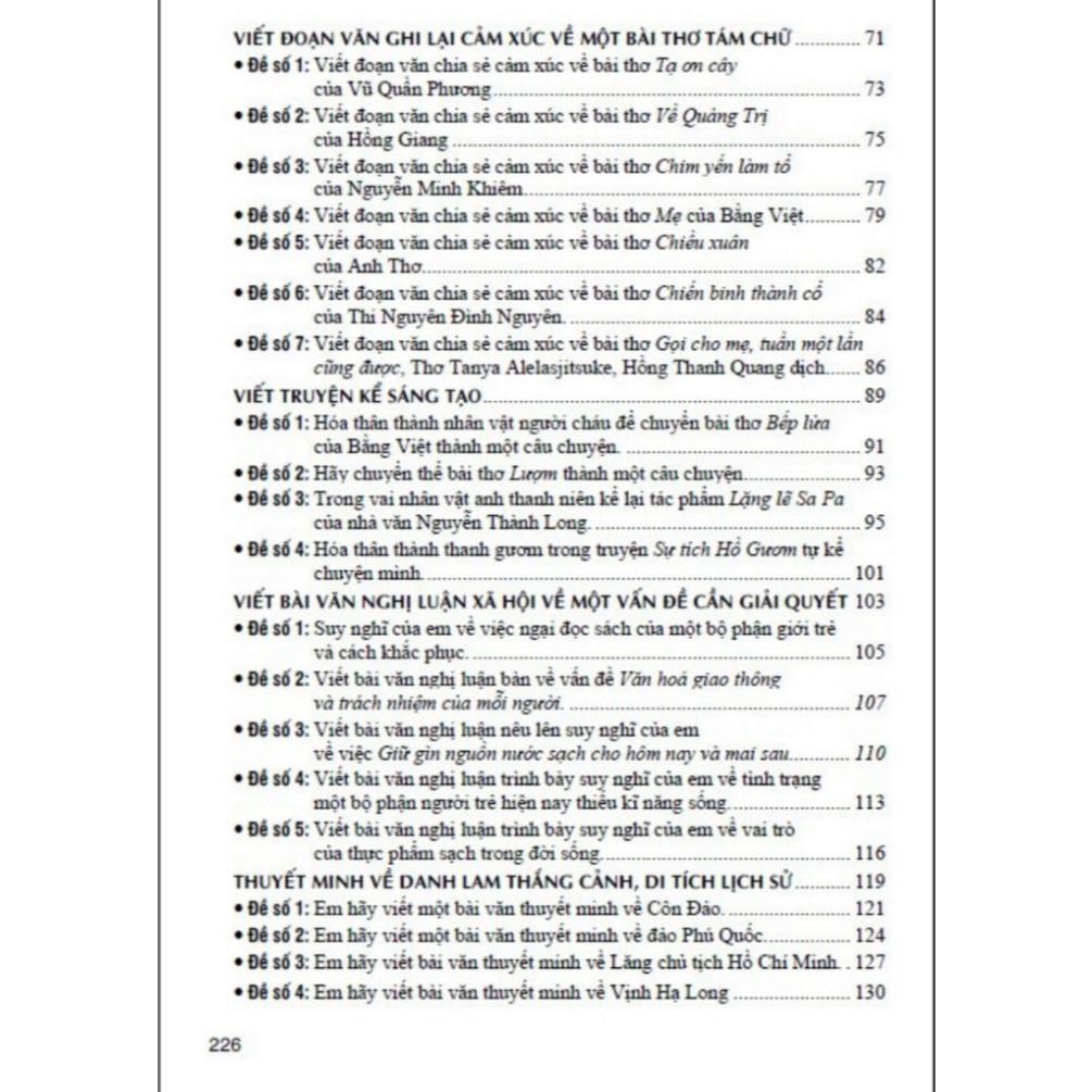 t- Phần đề minh họa: các dàn ý và bài tham khảo (gợi ý dàn bài và bài văn hoàn chỉnh) hướng dẫn học sinh kĩ năng viết, nói – nghe.