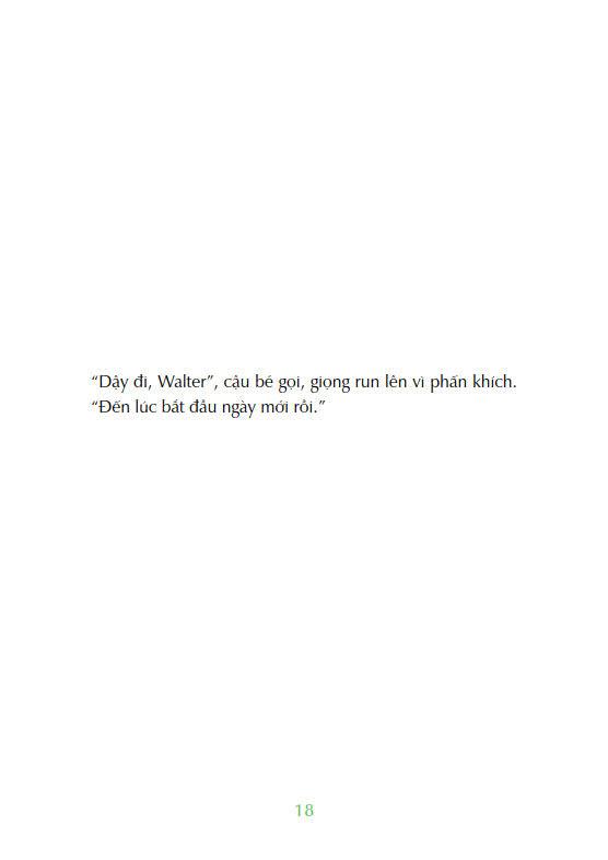 - Cậu bé vẫn chưa thấy thuyết phục. “Mẹ thì biết gì về chuyện làm trẻ con chứ?” “Thật ra, m.ình nghĩ người lớn nào cũng từng là trẻ con. Họ lớn lên từ đó mà!”, Walter đáp. “Chuyện đó chưa chắc đâu. Tớ đã sống với mẹ kể từ khi tớ chào đời, mà lúc nào tớ cũng thấy mẹ là người lớn!”