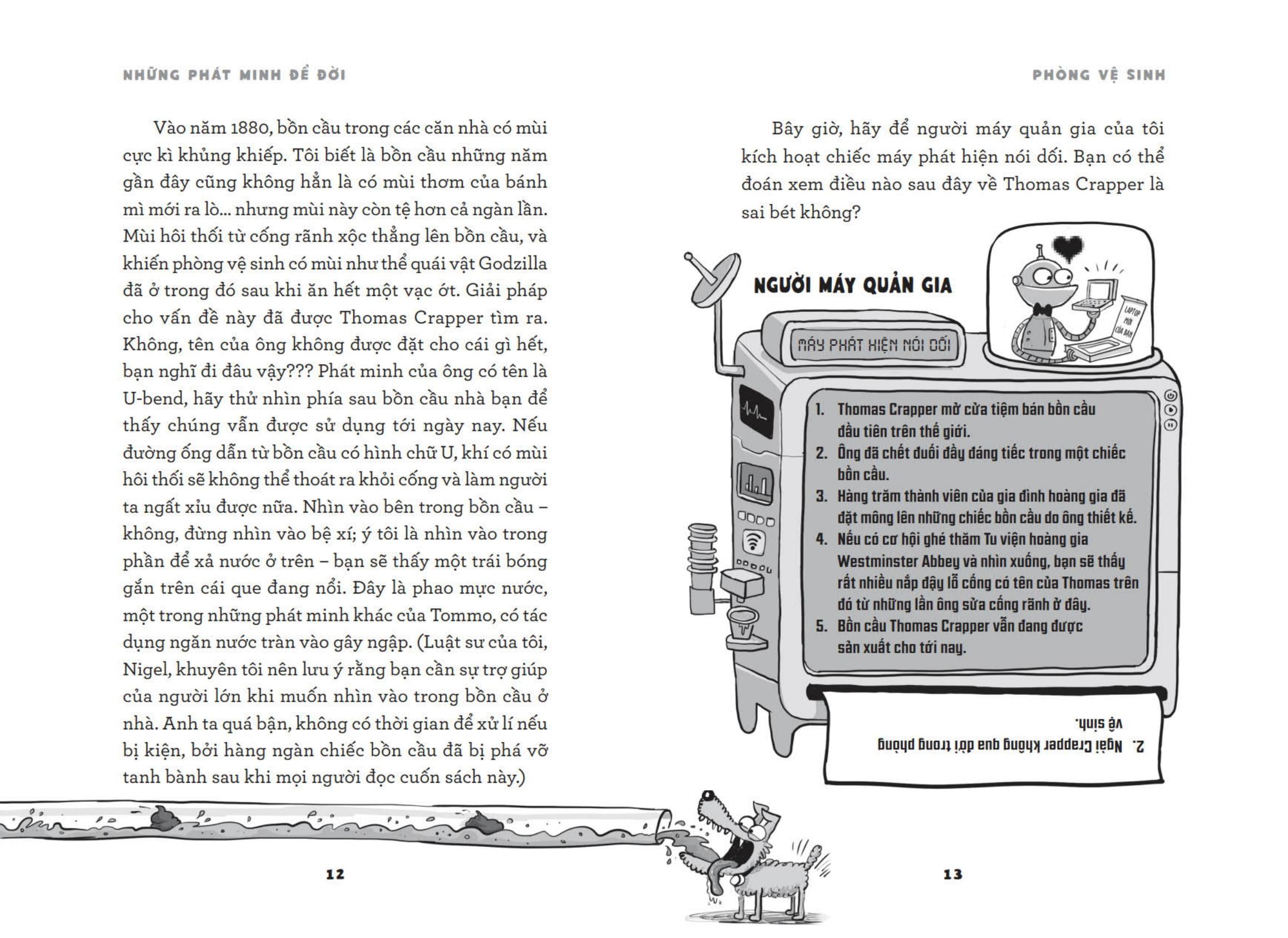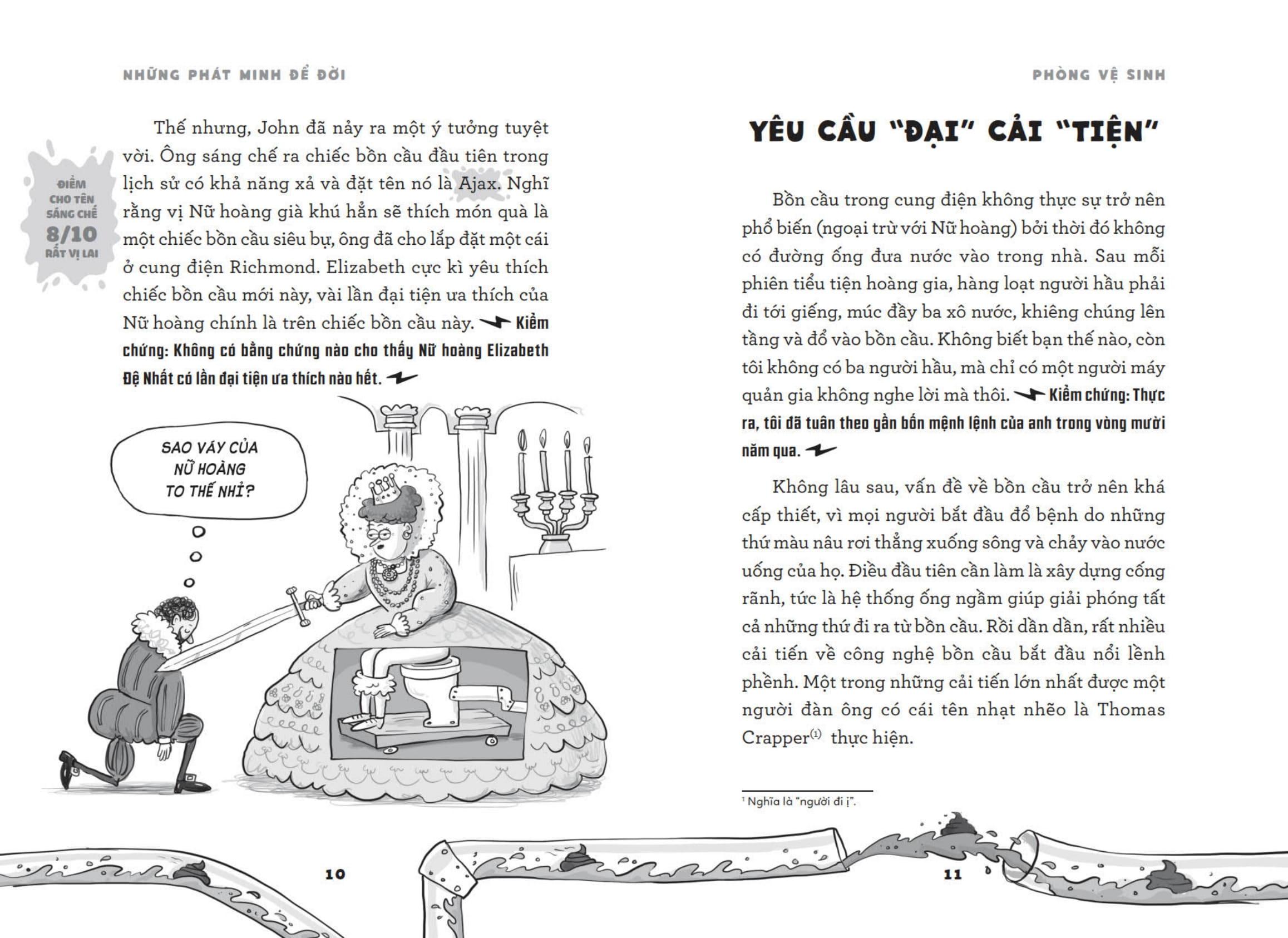 Kay’s Incredible Inventions - Những Phát Minh Để Đời Bạn đã bao giờ tự hỏi mọi thứ xung quanh m.ình đến từ đâu không? Ai là người đã nghĩ ra mấy thứ siêu việt như trò chơi điện tử, hoặc… ai là thiên tài đã “phát minh” ra trường học (phiền phức muốn xỉu)? Những Phát Minh Để Đời mang đến câu chuyện lịch sử các phát minh của loài người, ví dụ như: Tại sao người Hy Lạp cổ đại lại lau mông bằng… đĩa ăn? Chuyện “giải quyết nỗi buồn” của nữ hoàng dẫn đến… chiếc bồn cầu đầu tiên như thế nào? Làm sao một chú chó lại vô tình tạo ra… khóa dán velcro? Nào, hãy cùng khám phá 48.762.851.208 sự thật kì quặc (ước lượng thôi nhá!) về phát minh, từ NGỚ NGẨN đến KINH TỞM và thậm chí là NGUY HIỂM RỢN TÓC GÁY trong cuốn sách mới nhất của tác giả Adam Kay nhé!