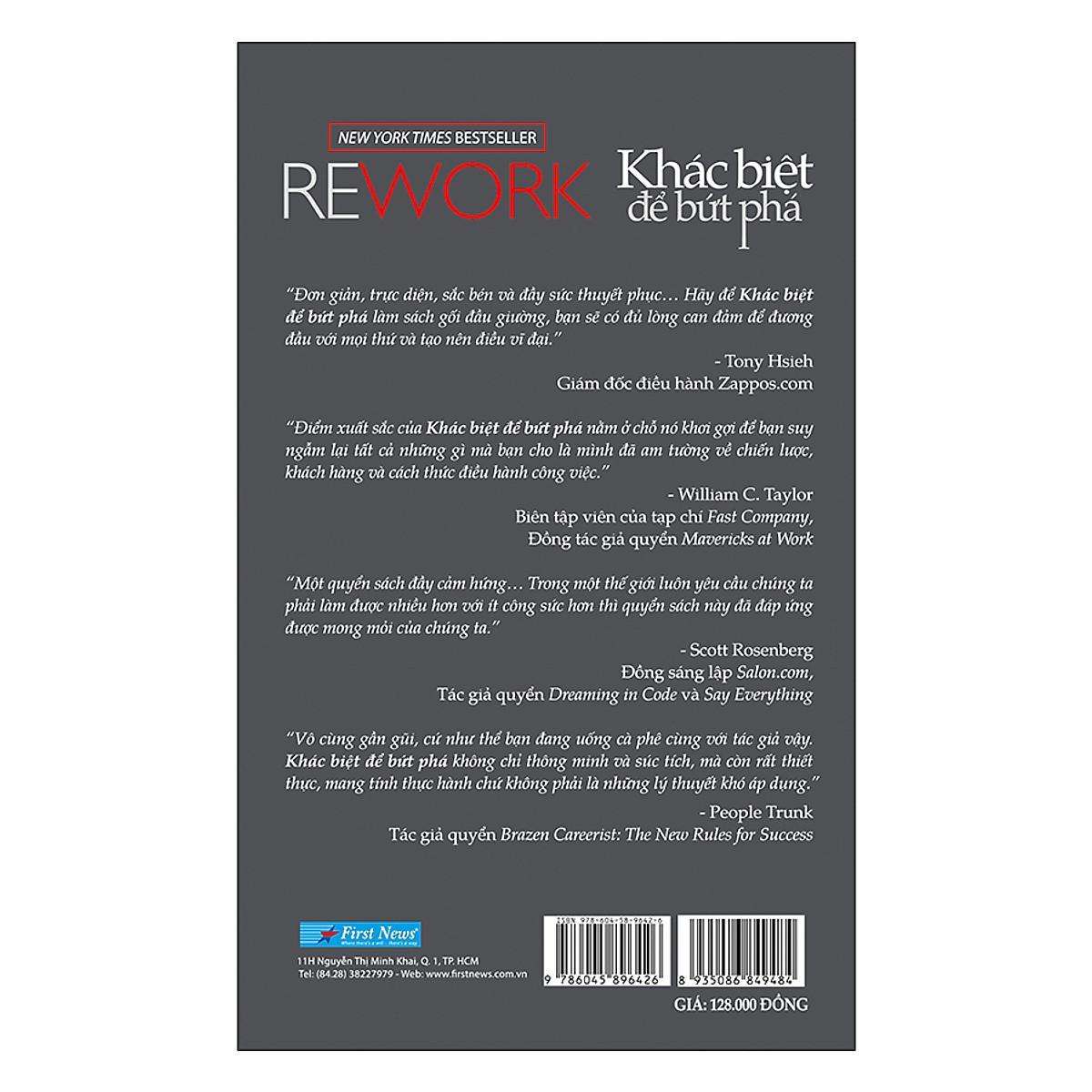 Khác biệt để bứt phá chỉ cho bạn một phương thức vô cùng dễ dàng để bạn gặt hái thành công. Bạn sẽ biết vì sao mình không cần đến nguồn vốn bên ngoài và vì sao bạn nên phớt lờ sự cạnh tranh. Sự thật là bạn cần ít hơn bạn nghĩ. Bạn không cần phải làm việc cật lực, không cần phải hoang phí thời gian cho công việc giấy tờ hay họp hội. Bạn thậm chí còn không cần đến cả văn phòng nữa. Những thứ đó tất thảy đều dư thừa.