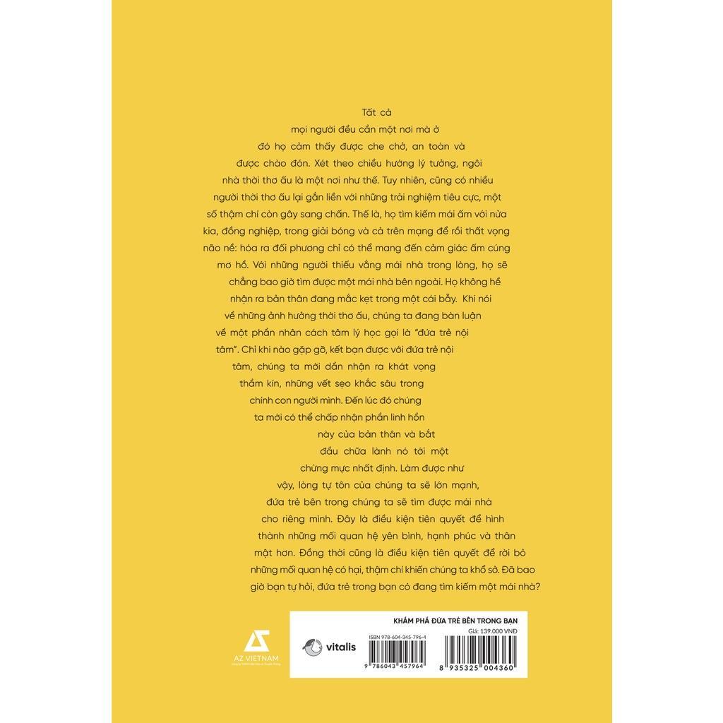 Trong cuốn sách “Khám phá đứa trẻ bên trong bạn”, tác giả Stefanie Stahl sẽ giúp bạn kết nối với đứa trẻ bên trong để tìm được mái ấm cho riêng mình, cách đạt được hạnh phúc, điều tiết cảm xúc và tin tưởng bản thân, xây dựng các mối quan hệ lành mạnh hơn. Và hãy nhớ rằng, chỉ khi nào gặp gỡ, kết bạn được với đứa trẻ nội tâm, bạn mới dần tìm ra được khát vọng thầm kín, những vết sẹo khắc sâu trong chính con người mình. Đồng thời đó cũng là chiếc khiên bảo vệ bạn khỏi những mối quan hệ độc hại không mong muốn.