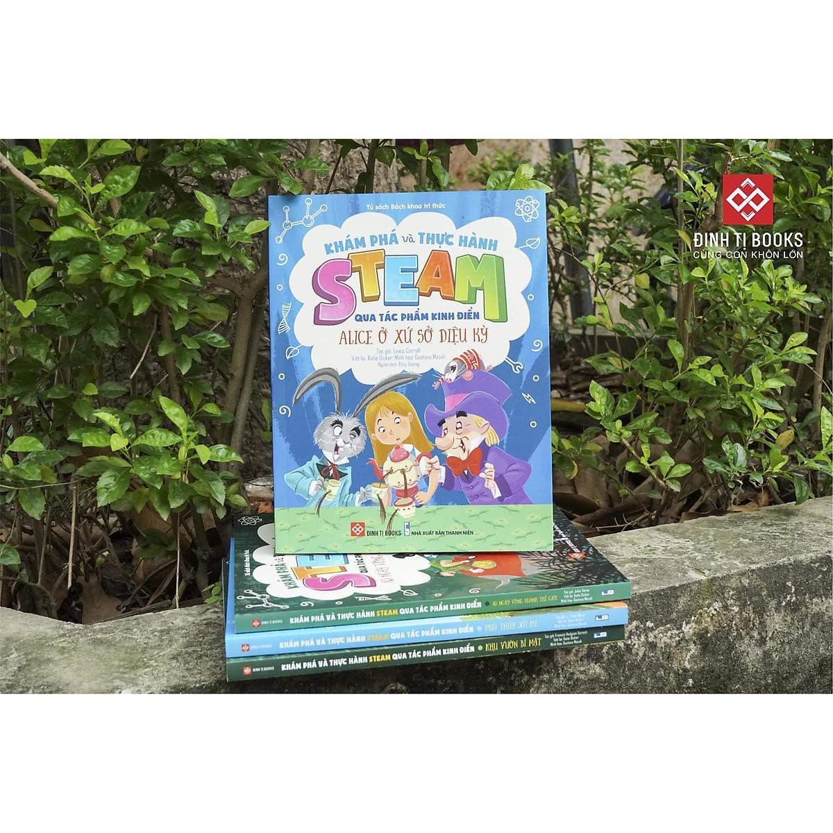 Đầy tò mò và thích thú khi khám phá khu vườn bí mật cùng cô bé Mary Lennox, một khu vườn bỏ hoang với chiếc chìa khóa được , cùng dõi theo hành trình đầy bí mật của Mary nhé! Với chủ đề này, em cũng sẽ được thực hành và khám phá STEAM qua các hoạt động như: làm chiếc còi hình chú chim, biết về các điều kiện để cây phát triển, tìm hiểu về sương mù, tại sao lại có mưa trên cánh đồng hoang… Mỗi một chủ đề trong bộ sách đều được khéo léo lồng ghép 20 hoạt động STEAM thú vị vào trong các tác phẩm văn học kinh điển của thế giới. Theo chân các nhân vật trong sách, em không những được tìm hiểu nhiều thông tin bổ ích mà còn được hướng dẫn cách thực hiện các thí nghiệm lý thú nữa. Sự kết hợp giữa các hình minh họa màu, cùng hình vẽ, biểu đồ sẽ hướng dẫn em chi tiết cách thực hành các hoạt động STEAM như thế nào. Một sự kết hợp mới lạ, lý tưởng giữa những câu chuyện hấp dẫn và niềm yêu thích khoa học của các bạn nhỏ.