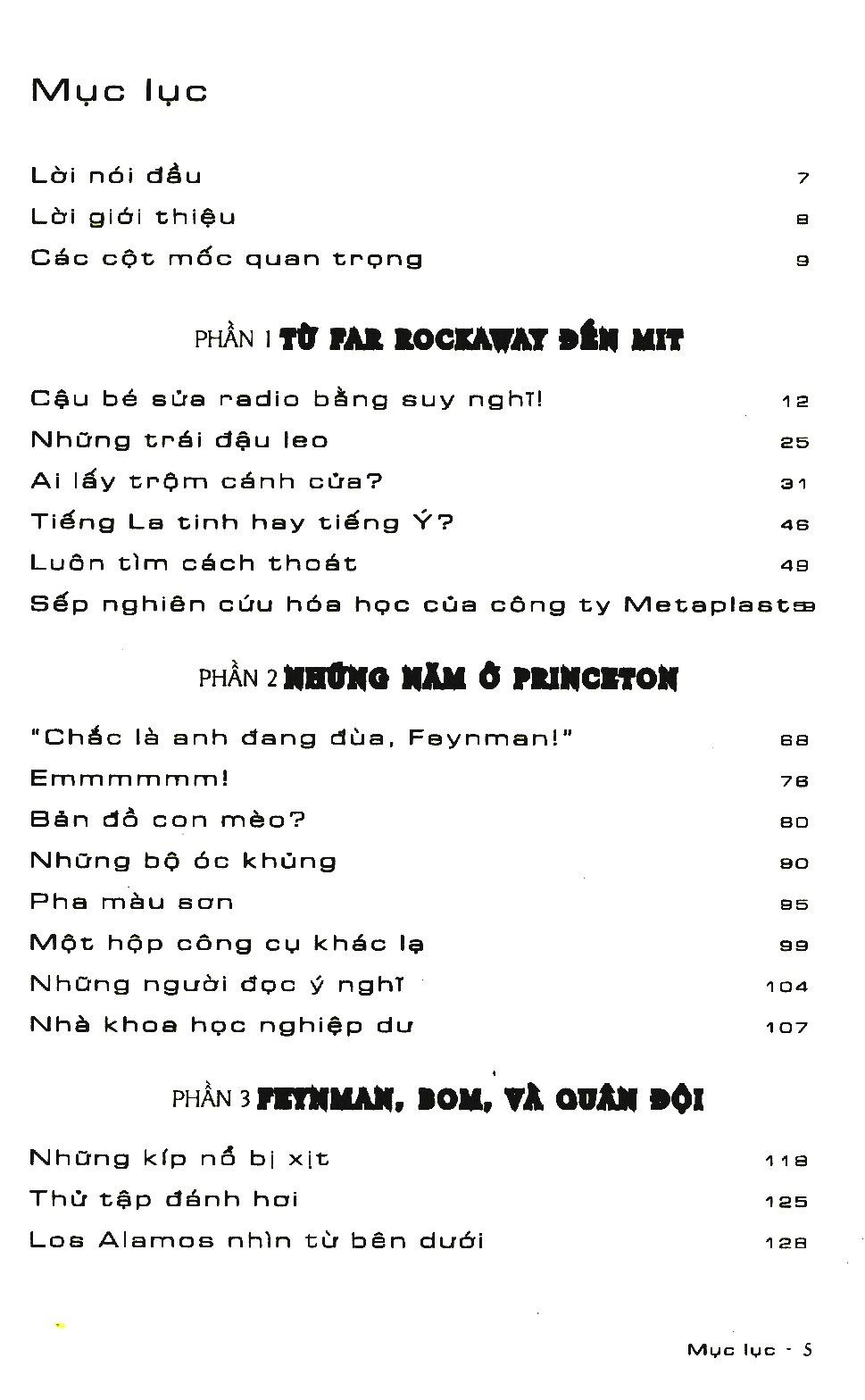 richard feynman (1918-1988), người đoạt giải nobel về vật lý, đã kể về những cuộc phiêu lưu kỳ quặc. bằng một giọng quá tài tình ông tường thuật lại trong cuốn sách những trải nghiệm của m.ình khi trao đổi các ý tưởng về vật lý nguyên tử với einstein và bohr cũng như các mưu mẹo về với nick the greek; khi mở những cái két khủng lưu giữ những bí mật hạt nhân được bảo quản cẩn trọng nhất; khi đệm trống bongo cho một vở ba-lê; khi vẽ một nữ đấu sĩ bò tót ở trần – và nhiều trải nghiệm khác của một bản năng rất đỗi ngạc nhiên. nói gọn lại, đây là cuộc sống của feynman trong tất cả niềm tự hào khác thường của nó - một pha trộn tinh tế của trí thông minh đỉnh cao, tính ham hiểu biết không có giới hạn, và sự tự tin tuyệt đỉnh