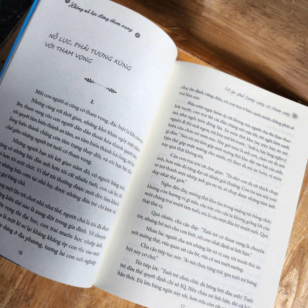 Có khát vọng, con người sống lành mạnh và biết nỗ lực hơn. Tham vọng cũng là mong muốn nhưng lại ở khía cạnh tham lam hơn, vượt quá khả năng, có phần phi thực tế và mang chiều hướng tiêu cực. Nắm rõ khả năng của mình Một người quá tham vọng có thể sẽ suy nghĩ quá nhiều, luôn nghĩ mọi cách để đạt được tham vọng đó, dẫn đến mệt mỏi, hao tốn thời gian, thêm lo lắng và áp lực cho bản thân. Những bạn trẻ chưa đạt được thành công, thành tích hay công lao gì thường ôm tham vọng lớn. Nhưng, bạn nên biết giới hạn, nắm rõ khả năng của mình để không phải rượt đuổi theo những giá trị hư ảo ngoài tầm với. Đừng lấy câu nói “Không có gì là không thể” để ngụy biện, dễ dẫn tới tự phụ, tự tin thái quá. Hãy nỗ lực trước khi tham vọng Cuốn sách Không nỗ lực đừng tham vọng của tác giả Lý Thượng Long sẽ đem đến cho bạn những góc nhìn mới mẻ và lập luận sắc bén về quan điểm Hãy nỗ lực trước khi tham vọng một điều gì đó, nếu không bạn chỉ là kẻ viển vông. Để thể hiện sâu sắc nội dung đó, cuốn sách đem đến 4 chương rất thú vị, gồm: Chương 1: Nỗ lực phải tương xứng với tham vọng Chương 2: Người luôn tiến bộ sẽ không bị già đi Chương 3: Luôn đem đến cuộc sống bất ngờ đầy màu sắc Chương 4: Rồi sẽ đến một thời khác, chúng ta đột nhiên thấy mình đã trưởng thành Thông qua cuốn sách ta nhận thấy, tham vọng đúng hoàn cảnh, tham vọng tương đương với nỗ lực ta bỏ ra có thể là động lực cố gắng, là một liều doping hữu hiệu. Nhưng nếu quá tham vọng, quá ham muốn những gì vượt xa tầm với, muốn sớm sở hữu được nó trong khi mình chưa đủ khả năng sẽ chỉ mang lại tác dụng ngược mà thôi. Không có gì là hoàn hảo tuyệt đối “Trái tim thật nhỏ, nhưng lại khao khát những điều to lớn. Nó chẳng đủ để làm bữa tối của một chú diều hâu, thế nhưng toàn bộ thế giới đều không đủ đối với nó” – Francis Quarles. Những người cầu toàn sẽ hoàn thành đầy đủ những mục tiêu đề ra một cách hoàn mỹ nhất, điều đó cũng có lợi trong hoàn cảnh nhất định nhưng nhìn chung toàn diện thì hại nhiều hơn lợi. Quá cầu toàn sẽ khiến ta không thể thích ứng, khó chấp nhận hiện thực, hoàn cảnh rồi khiến ta mệt mỏi và “đuối nước” giữa dòng chảy của thời gian và cuộc đời, dần cũng sẽ chán nản, thụt lùi và bỏ cuộc như quá tham vọng, để rồi thua cả một người tầm thường. Chẳng những thế, quá cầu toàn còn gây khó chịu cho mọi người xung quanh, khiến các mối quan hệ dần mờ nhạt. Nói như vậy không phải cổ vũ những người không hề có ý chí cầu tiến, không hề có ham muốn gì để thành động lực phấn đấu hay cho phép mình sơ suất, cẩu thả vì nghĩ không cần hoàn mỹ, mà chúng ta phải biết chừng mực và giới hạn. Hai đặc tính trên xuất phát từ nhận thức nên có thể từ từ điều chỉnh được. Đừng để sau thật nhiều thất bại mới khiến bạn thay đổi. Hãy nhớ: “Đừng bao giờ chờ đợi một thứ gì đó thật hoàn hảo,
