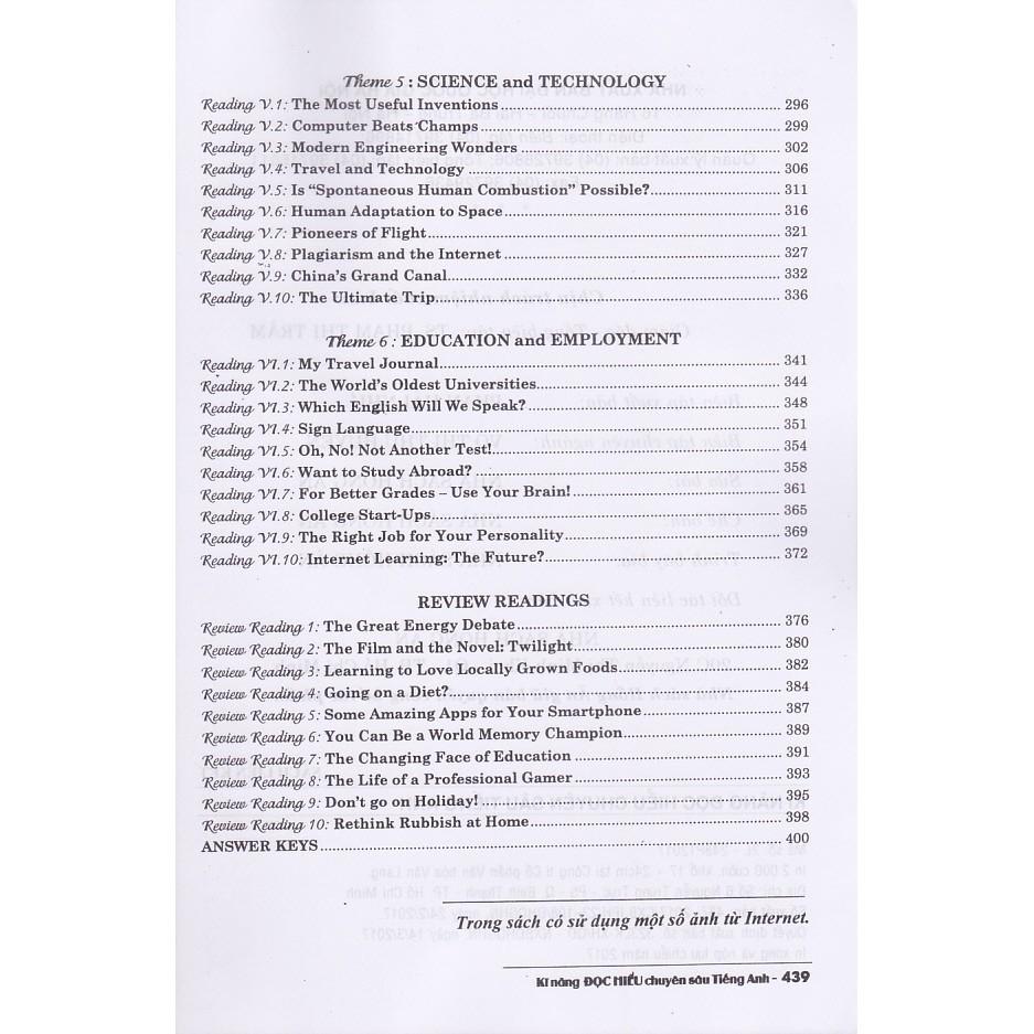 Cấu trúc của cuốn sách gồm 100 bài đọc được phân bổ đều vào 6 chủ đề.