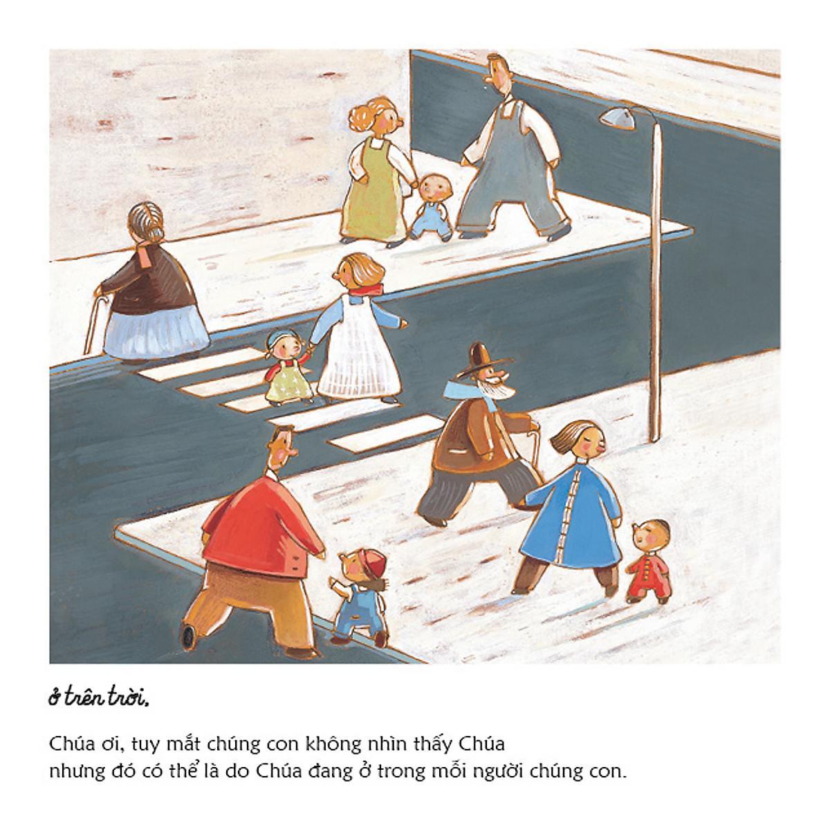 Tập truyện bé nhỏ đầy màu sắc này minh hoạ hai kinh quen thuộc của người Kitô hữu giúp bé nói với Đức Maria như nói với mẹ, chị hay bạn mình và nói với Thiên Chúa như nói với cha mình.