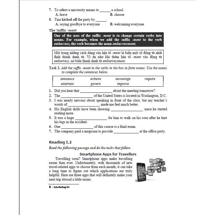 Nhằm giúp các em làm tốt bài thi, chúng tôi giới thiệu những kĩ năng đọc hiểu từ cơ bản đến nâng cao. Khi các em đã có những kĩ năng cần thiết thì có thể làm các bài tập từ dễ đến khó. Do những yêu cầu trên, chúng tôi trình bày mỗi bài đọc kèm theo ba phần luyện tập sau đây: