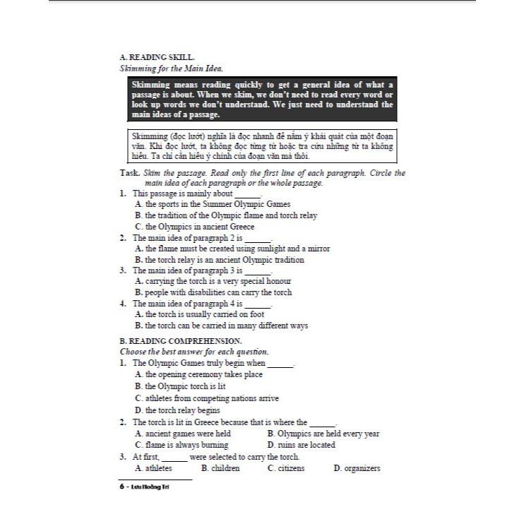B. Reading Skill (Kĩ năng đọc hiểu) trình bày lần lượt các kĩ năng đọc, trong đó các kĩ năng đọc cơ bản được rèn luyện nhiều lần.