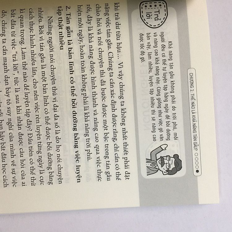 Thoạt nhìn qua, ta có thể kết luận rằng việc tán gẫu vốn chỉ là trò chuyện đơn giản mà thôi, chẳng cần đến kiến thức gì cao siêu. Nhưng kì thực, nội hàm hoạt động này là những kĩ năng giao tiếp từ thấp đến cao. Phương thức giao tiếp này không hề mới mẻ, bản chất chính là chào hỏi và trò chuyện, nhưng chào hỏi và trò chuyện như thế nào để đạt được hiệu quả giao tiếp tốt thật sự không hề đơn giản. Không chỉ đơn thuần cung cấp những kiến thức, tình huống và những mẹo hữu ích, cuốn sách còn có những hình minh họa trực quan, sinh động, giúp người đọc hiểu rõ hơn về nội dung trong đó.
