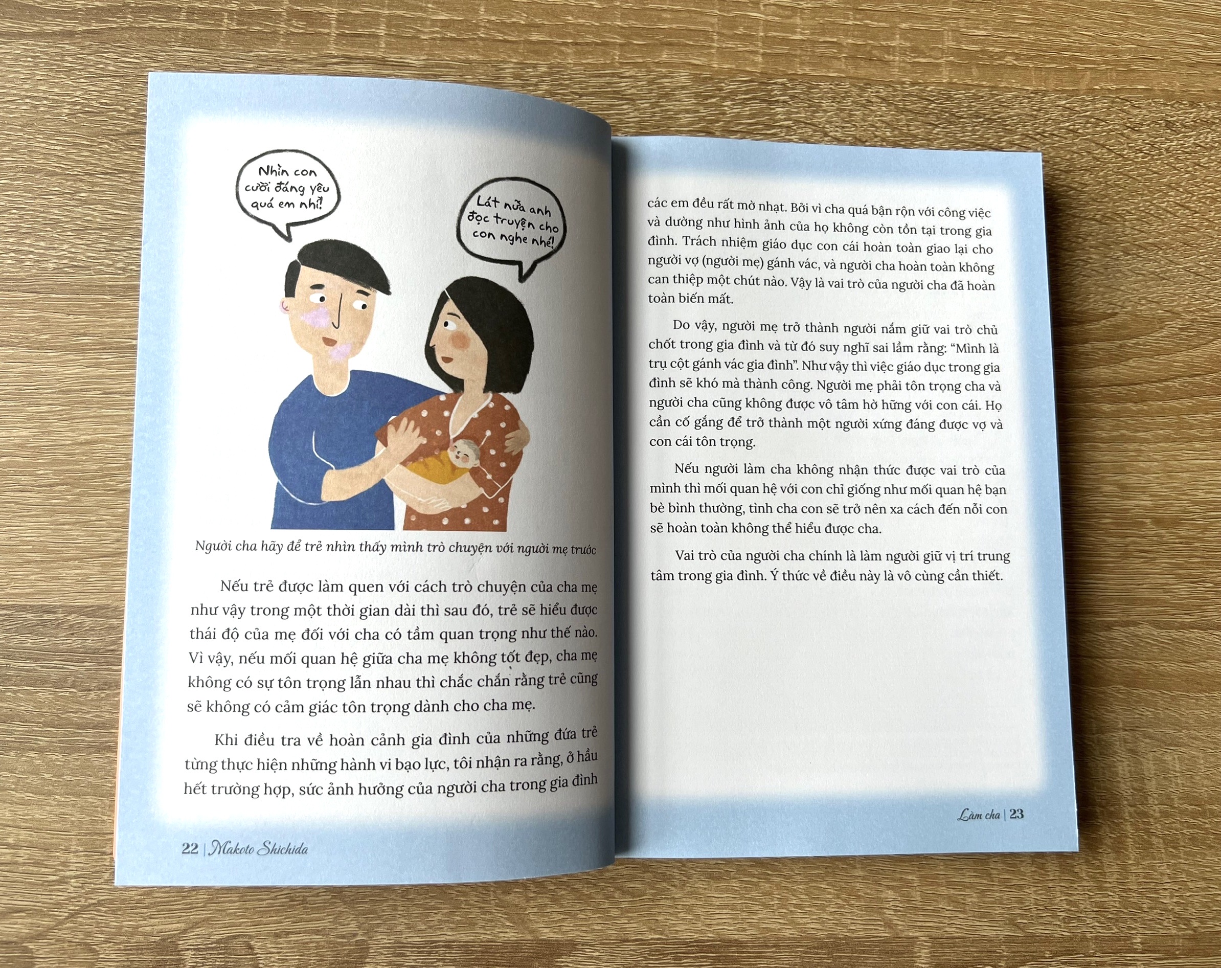 Mua tại TiktokCuốn sách như một bản tóm tắt và thuyết trình chuẩn mực cho các ông bố bận rộn với trăm ngàn lý do khác nhau để thay đổi cách nhìn nhận của họ về vai trò của người làm cha. Sự thay đổi cách nhìn nhận của người cha và sự tham gia tích cực hơn trong việc nuôi dạy con có thể đạt được kết quả ngay tức khắc, chứ không cần phải "chờ con lớn hơn chút nữa". (Theo Viện giáo dục Shichida Việt Nam)