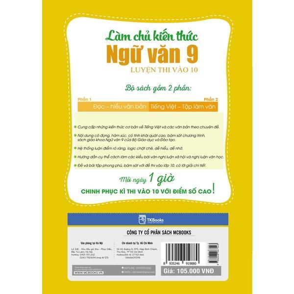 ✨Sách - Làm Chủ Kiến Thức Ngữ Văn Lớp 9 Luyện Thi Vào 10 - Phần 2 - Tiếng Việt - Tập Làm Văn - MCBooks