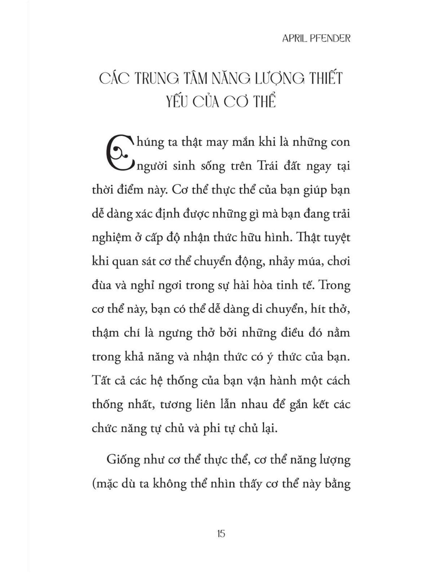 Sách là cuốn cẩm nang chi tiết hướng dẫn cách đả thông 7 luân xa chính trong cơ thể bằng thiền, qua đó giúp người thực hành tự chữa lành và duy trì sức khỏe, thúc đẩy bản thân phát triển thành phiên bản tốt nhất của chính m.ình. April đặc biệt thiết kế cuốn sách phù hợp với nhịp sống hiện đại hiện nay, vì với mỗi luân xa cần khai thông cô đều giới thiệu 3 bài tập với thời lượng lần lượt là 5, 15 và 30 phút cùng bài tập mở rộng tùy chọn cũng như mẹo nhỏ hữu ích; từ đó giúp người đọc chọn được lộ trình thực hành thiền phù hợp nhất với bản thân.