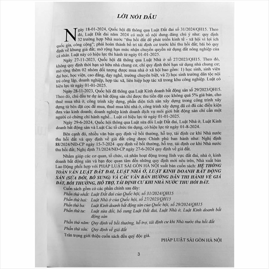 ✨Sách Luật Đất Đai - Luật Nhà Ở - Luật Kinh Doanh Bất Động Sản và Văn Bản Hướng Dẫn Thi Hành - V2431D