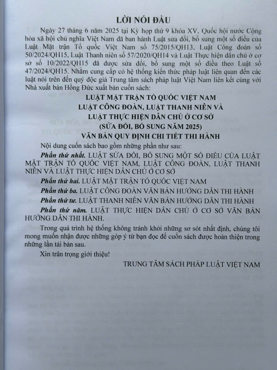 Nhà sách Nam Việt – Namvietbook xin trân trọng giới thiệu cuốn sách: Luật Mặt Trận Tổ Quốc Việt Nam, Luật Công Đoàn, Luật Thanh Niên Và Luật Thực Hiện Dân Chủ Ở Cơ Sở (sửa đổi, bổ sung năm 2025) – Văn Bản Quy Định Chi Tiết Thi Hành Sách Luật Mặt Trận Tổ Quốc Việt Nam, Luật Công Đoàn, Luật Thanh Niên Và Luật Thực Hiện Dân Chủ Ở Cơ Sở (sửa đổi, bổ sung năm 2025) – Văn Bản Quy Định Chi Tiết Thi Hành