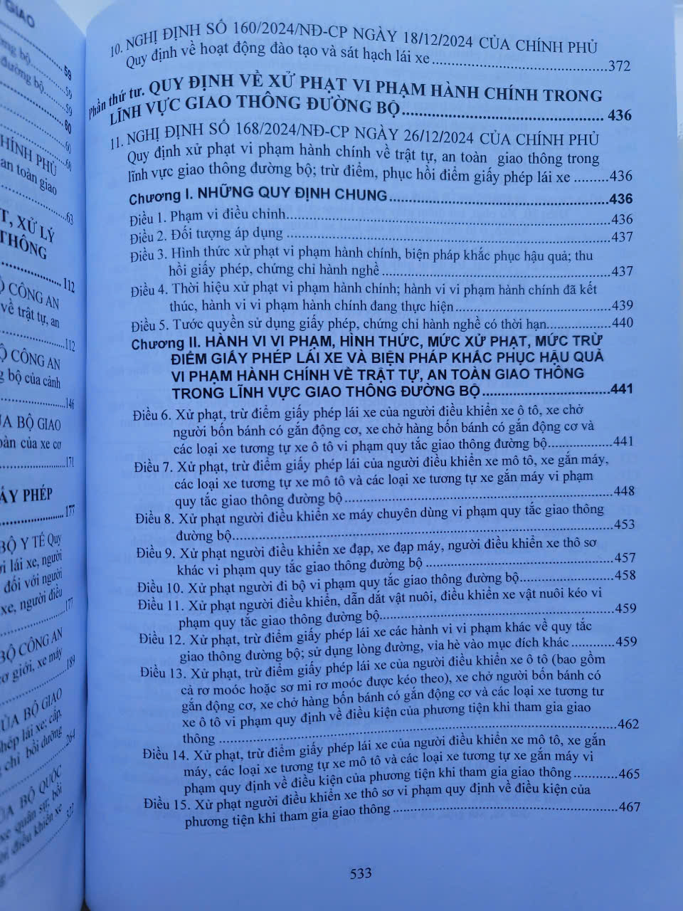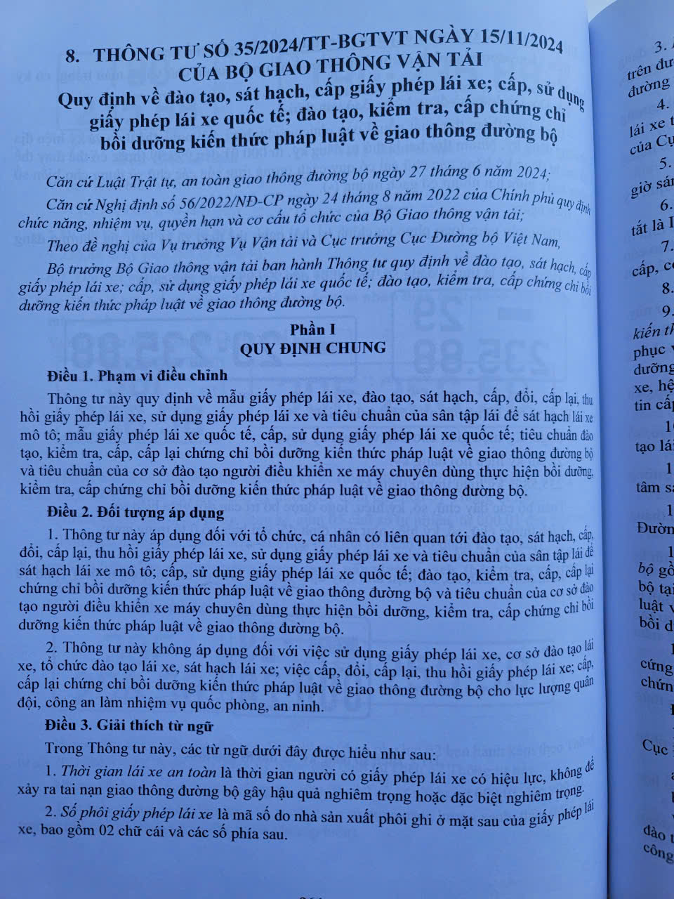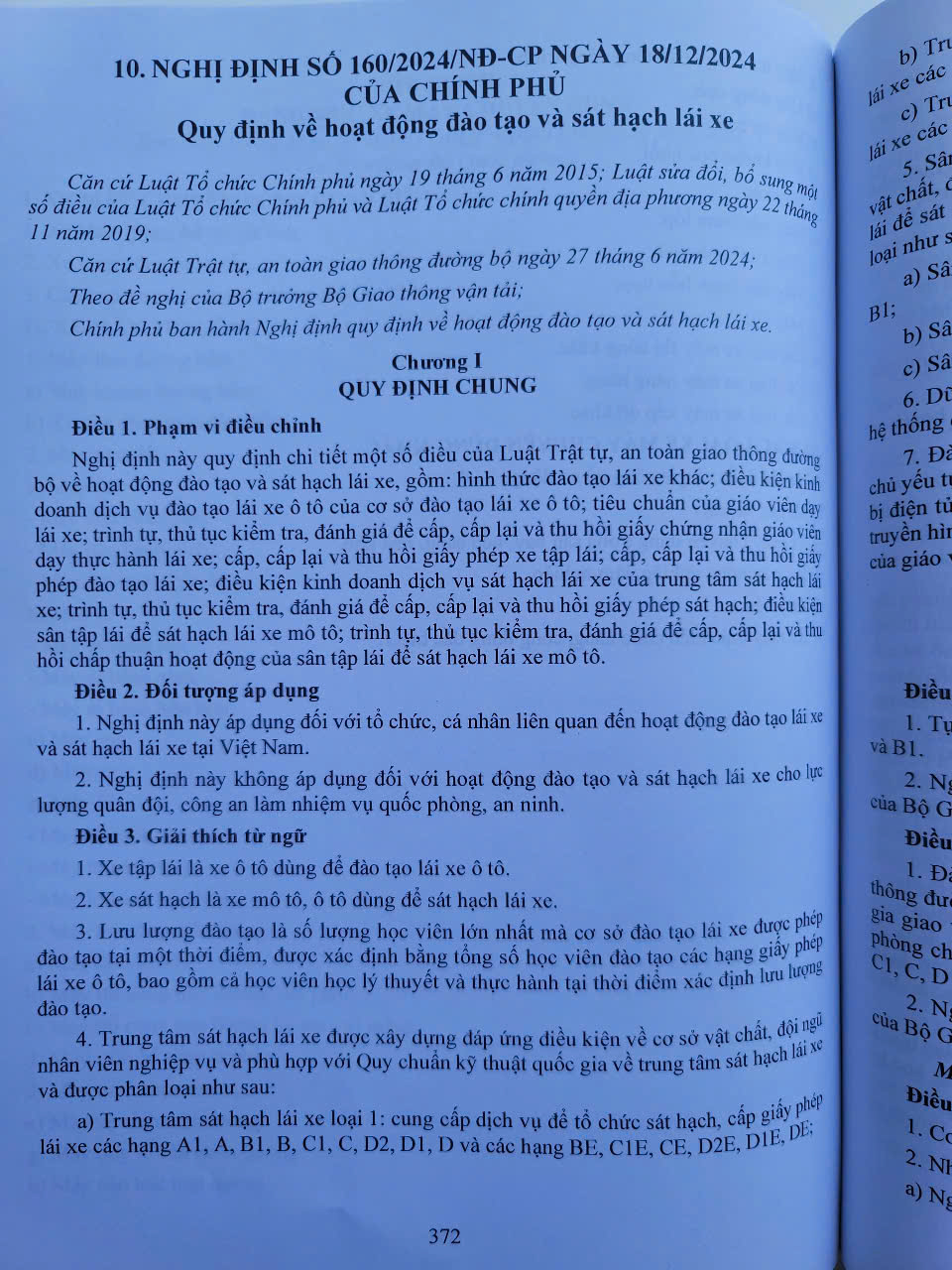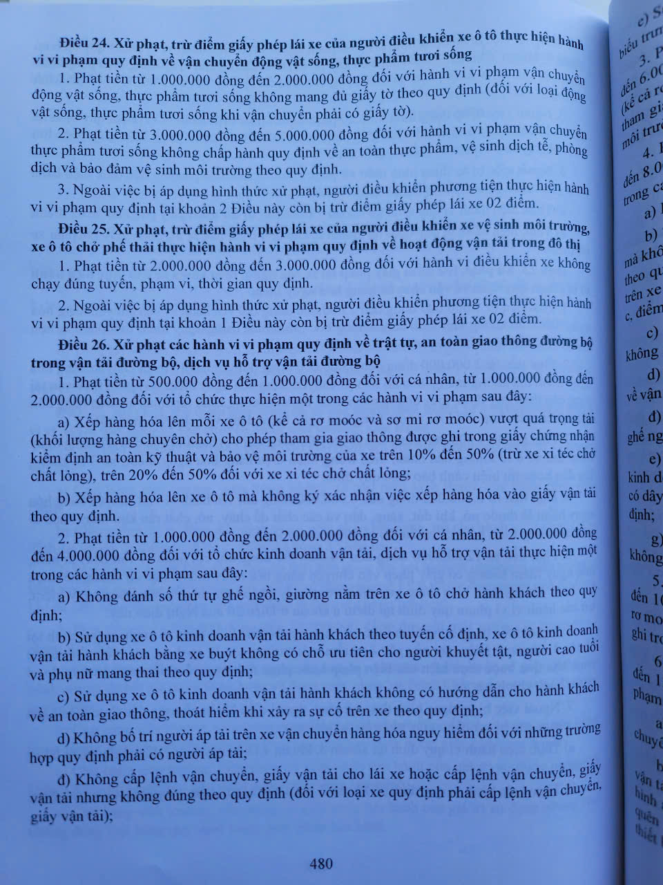 - Toàn bộ sách bìa mềm khổ lớn 20 x 28 cm phân phối bởi Nhà sách Nam Việt đều được bọc sách Plastic MIỄN PHÍ và xuất hóa đơn điện tử đầy đủ, nhanh chóng. ...//… Lời giới thiệu: Luật Trật tự, an toàn giao thông đường bộ số 36/2024/QH15 được Quốc hội thông qua ngày 27/6/2024, có hiệu lực thi hành từ ngày 01/01/2025 với nhiều điểm mới như: thay đổi phân hạng giấy phép lái xe; tăng độ tuổi tối đa của người lái xe; bổ sung quy định trừ điểm giấy phép lái xe; từ 01/01/2026, không được cho trẻ em dưới 10 tuổi và chiều cao dưới 1,35m ngồi cùng hàng ghế tài xế... Để triển khai Luật kịp thời, thống nhất, hiệu lực, hiệu quả, Chính phủ và các Bộ ngành cũng đã ban hành nhiều văn bản hướng dẫn Luật như Nghị định số 151/2024/NĐ-CP ngày 15/11/2024 Quy định chi tiết một số điều và biện pháp thi hành Luật Trật tự, an toàn giao thông đường bộ; Thông tư số 73/2024/TT-BCA ngày 15/11/2024 Quy định công tác tuần tra, kiểm soát, xử lý vi phạm pháp luật về trật tự, an toàn giao thông đường bộ của cảnh sát giao thông; Nghị định số 168/2024/NĐ-CP ngày 26/12/2024 Quy định xử phạt vi phạm hành chính về trật tự, an toàn giao thông trong lĩnh vực giao thông đường bộ; trừ điểm, phục hồi điểm giấy phép lái xe... Nhằm góp phần phổ biến những quy định pháp luật về giao thông đường bộ cho các cơ quan ban ngành, cá nhân trong và ngoài nước, Nhà sách Nam Việt xin trân trọng giới thiệu cuốn sách: Luật Trật Tự, An Toàn Giao Thông Đường Bộ Và Văn Bản Hướng Dẫn Quy Trình Tuần Tra, Xử Lý Vi Phạm Về Trật Tự, An Toàn Giao Thông Đường Bộ, Đào Tạo, Sát Hạch, Cấp Giấy Phép Lái Xe …//… Nội dung cuốn sách gồm 4 phần sau: Phần thứ nhất. Luật trật tự, an toàn giao thông đường bộ và nghị định hướng dẫn thi hành Phần thứ hai. Quy định công tác tuần tra, kiểm soát, xử lý vi phạm pháp luật về trật tự, an toàn giao thông đường bộ Phần thứ ba. Quy định về đào tạo, sát hạch, cấp giấy phép lái xe Phần thứ tư. Quy định về xử phạt vi phạm hành chính trong lĩnh vực giao thông đường bộ *** Quý khách hàng hãy an tâm khi mua sách tại Nhà sách Nam Việt, cam kết uy tín, chất lượng, sách bản gốc chuẩn đẹp, được kiểm hàng, hài lòng mới thanh toán, sách đã được bọc plastic cao cấp miễn phí! …//… Cảm ơn các bạn đã ghé thăm shop Nhà sách Nam Việt ! Sách Luật Trật Tự, An Toàn Giao Thông Đường Bộ Và Văn Bản Hướng Dẫn Quy Trình Tuần Tra, Xử Lý Vi Phạm Về Trật Tự, An Toàn Giao Thông Đường Bộ, Đào Tạo, Sát Hạch, Cấp Giấy Phép Lái Xe Sách Luật Trật Tự, An Toàn Giao Thông Đường Bộ Và Văn Bản Hướng Dẫn Quy Trình Tuần Tra, Xử Lý Vi Phạm Về Trật Tự, An Toàn Giao Thông Đường Bộ, Đào Tạo, Sát Hạch, Cấp Giấy Phép Lái Xe
