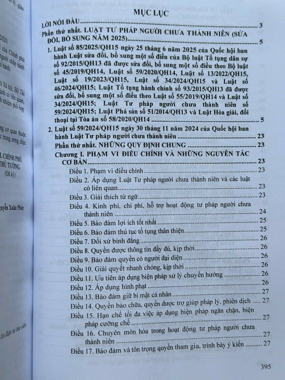 Phần thứ nhất. LUẬT TƯ PHÁP NGƯỜI CHƯA THÀNH NIÊN (sửa đổi, bổ sung năm 2025).