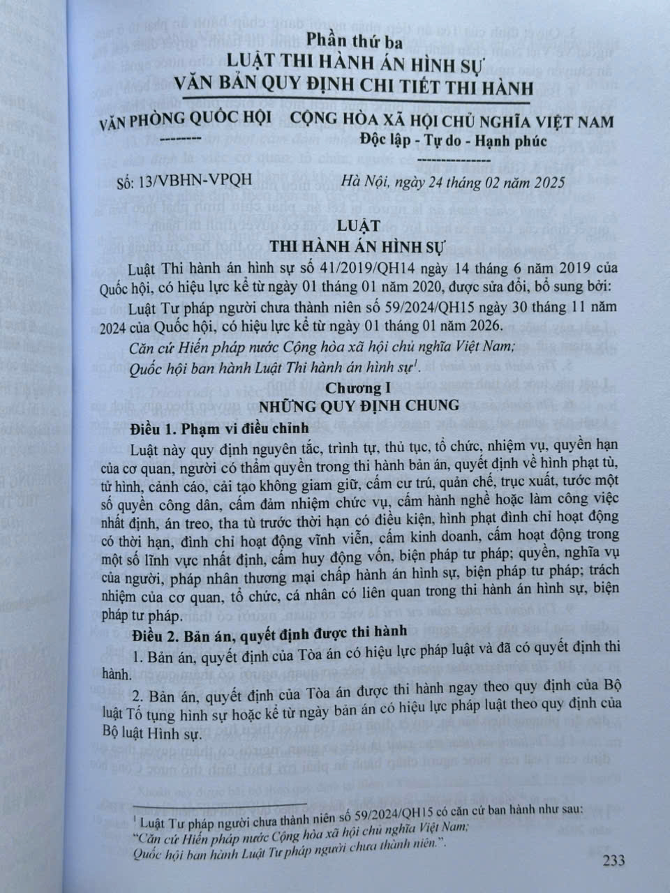Phần thứ ba. LUẬT THI HÀNH ÁN HÌNH SỰ VĂN BẢN QUY ĐỊNH CHI TIẾT THI HÀNH