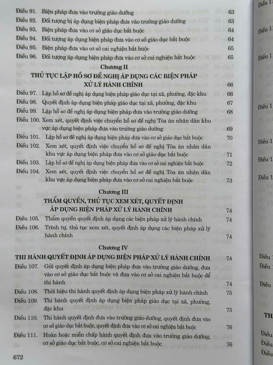 Luật gồm: – Những quy định chung – Xử phạt vi phạm hành chính – Áp dụng các biện pháp xử lý hành chính – Các biện pháp ngăn chặn và bảo đảm xử lý