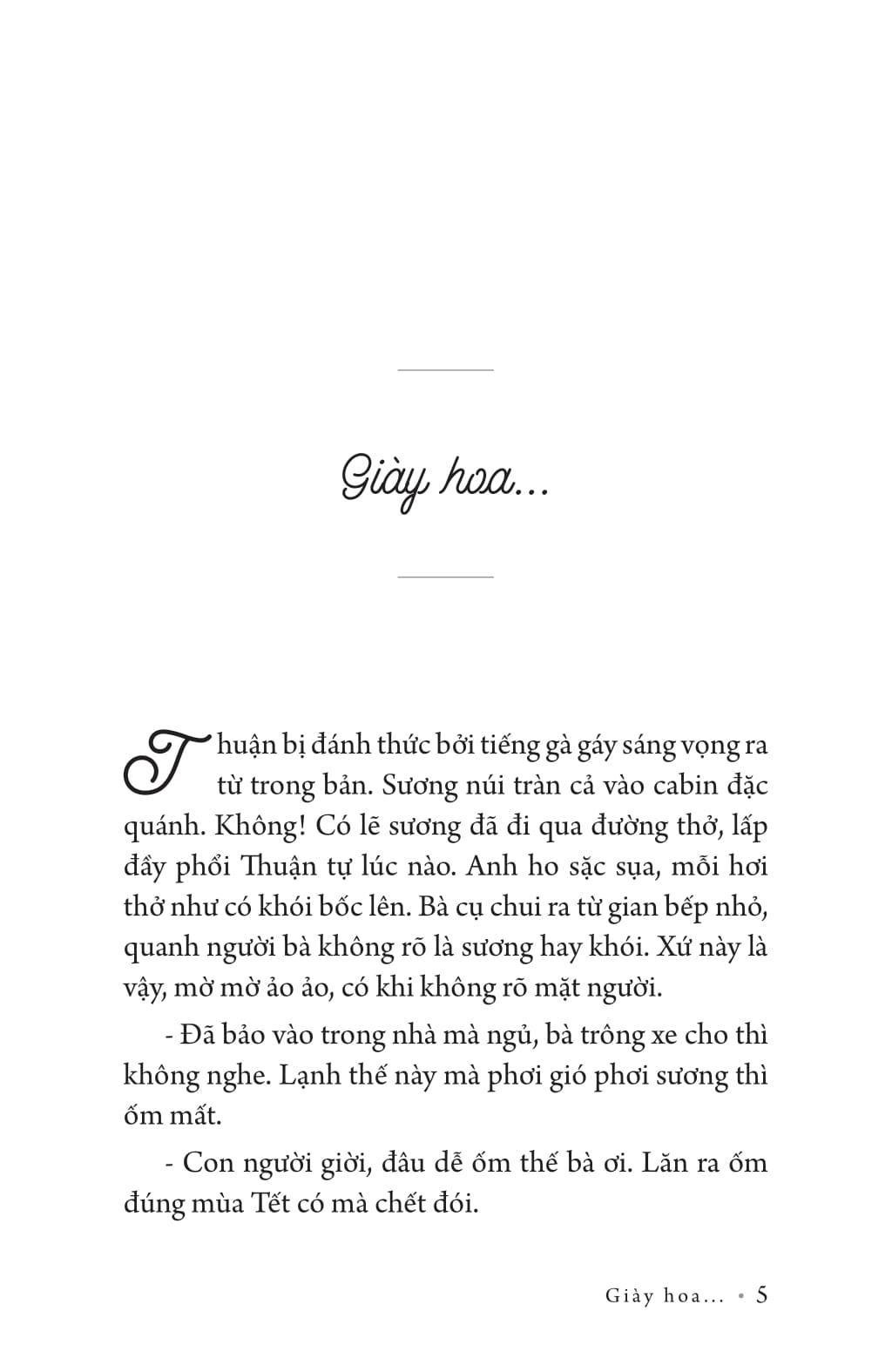 Tập truyện gồm các truyện ngắn: Giày hoa, Những khuôn mặt tượng, Kẻ dịch chuyển, Bụi đất, Gùi xuân lên đỉnh mây trời, Gió từ đỉnh núi, Tại sao im lặng?, Bên lề ký ức, Thả quỷ,...