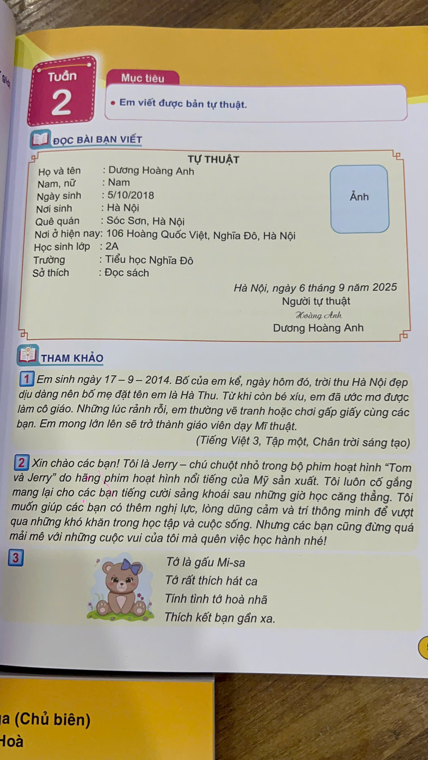 Mỗi tuần học gồm các phần: Mục tiêu, Đọc bài bạn viết, Tham khảo, Em luyện tập, Em thử tài giúp học sinh nắm được mục tiêu tuần học, cung cấp cho các em một số đoạn, bài viết mẫu của các bạn hoặc của thầy cô, nhà văn, chỉ dẫn cho các em lập ý, sử dụng từ ngữ, viết câu, dựng đoạn để tự viết được các câu văn, đoạn văn, bài văn mong muốn.