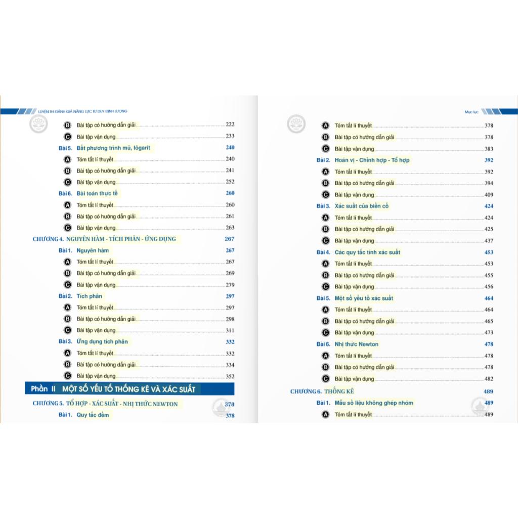 Cuốn Luyện thi Đánh giá Năng lực Tư duy Định Lượng - Phần kiến thức lớp 12 (Dành cho các kỳ thi đánh giá năng lực) gồm 5 phần :