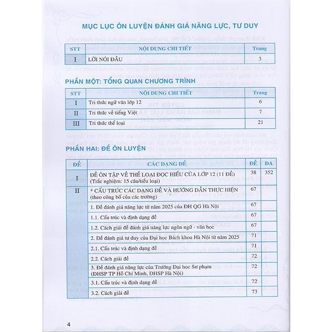 NỘI DUNG Sách - Luyện thi đánh giá năng lực và tư duy môn Ngữ văn (Theo chương trình 2018 và định dạng, cấu trúc của từng trường)