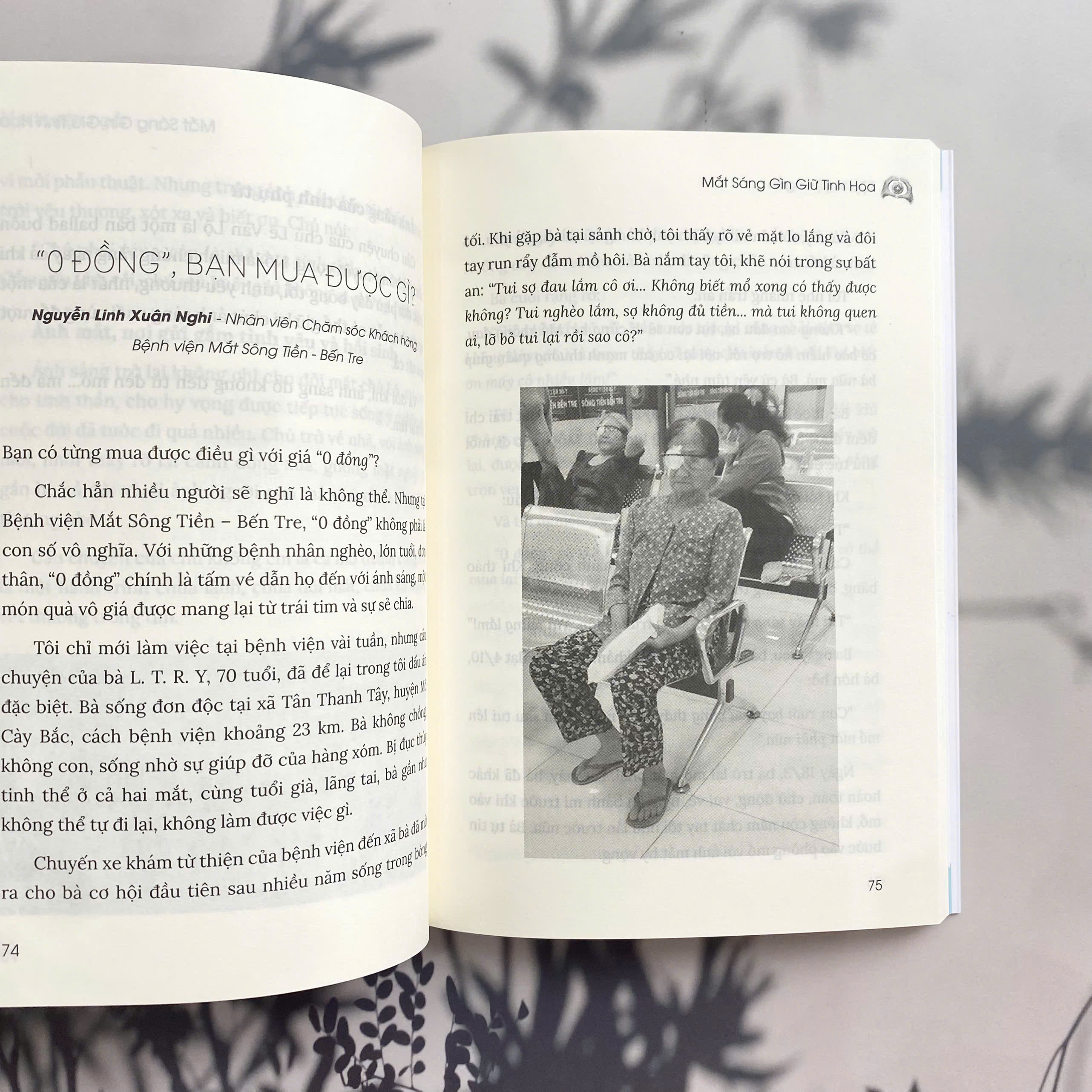 “Mắt sáng gìn giữ tinh hoa” là tuyển tập truyện ngắn đặc biệt gồm 50 câu chuyện có thật, được viết bởi chính các bác sĩ, điều dưỡng, kỹ thuật viên khúc xạ, dược sĩ, nhân viên y tế và chăm sóc khách hàng. Mỗi trang viết là một lát cắt chân thực của nghề y: từ cụ già mù lòa chỉ mong “mổ để bớt đau, chứ không cần sáng lại”; đến đứa trẻ bốn tuổi reo lên khi lần đầu tiên được đeo kính; hay hành trình của những y bác sĩ vượt qua giằng xé, nỗ lực không ngừng để mang ánh sáng trở lại cho người bệnh.