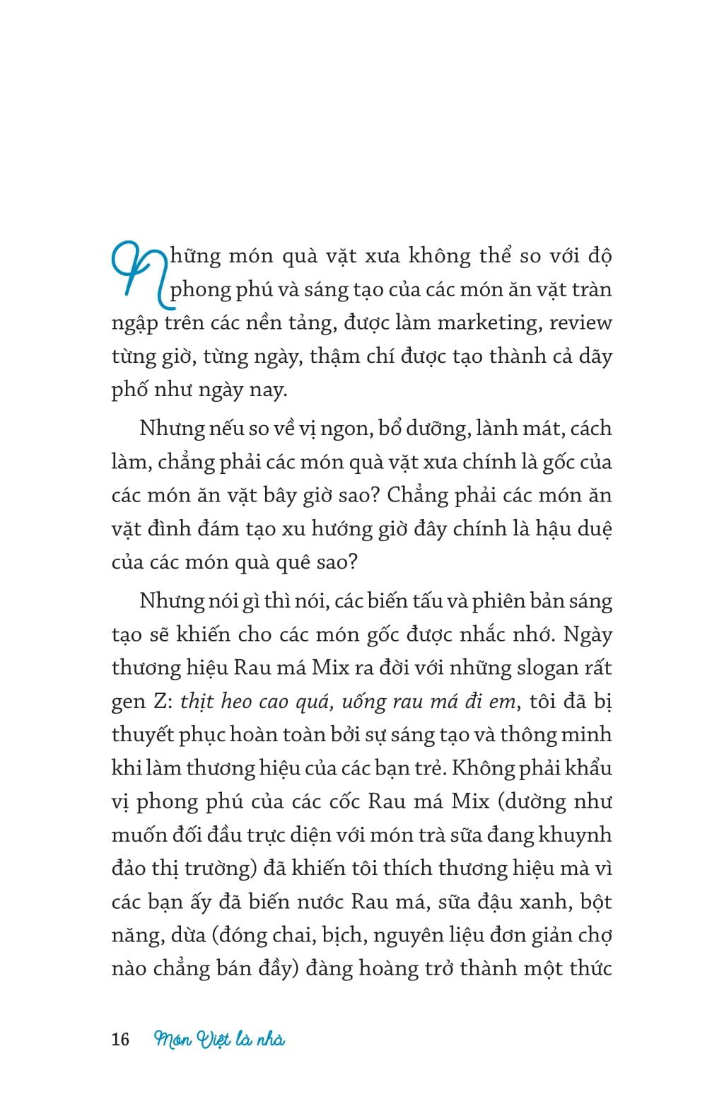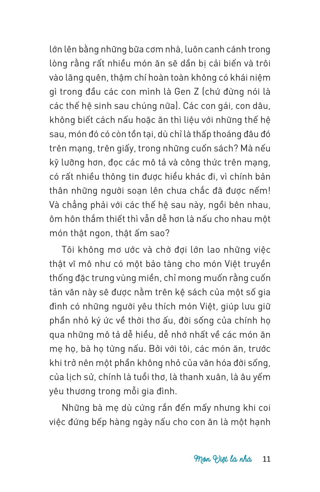 Nhà là nơi mở cửa ra ban công thấy mấy bông nhài đã nở lại nhớ đến những bình nước thơm mẹ thả vài bông, nhớ bát chè thoang thoảng hương đặt lên thành kính cảm tạ các cụ đã phù hộ cho con cháu chân cứng đá mềm. Nhà luôn là nơi bình yên, có bếp và các món Việt khi cả nhà quây quần trong yêu thương. Mà món nào được nấu bằng yêu thương, món ấy sẽ tỏa hương vị không thể nào quên. Để lớn lên, già đi, có ai không cần ăn và cần được yêu thương? Không phải ngẫu nhiên, mà khi Đen Vâu hát, đường về nhà là vào tim ta, đã lập tức có nhiều chục triệu người like. Nhà vẫn luôn là nhà, với các món Việt thơm thảo từ ký ức. Với hàng triệu người Việt, món Việt là Nhà.