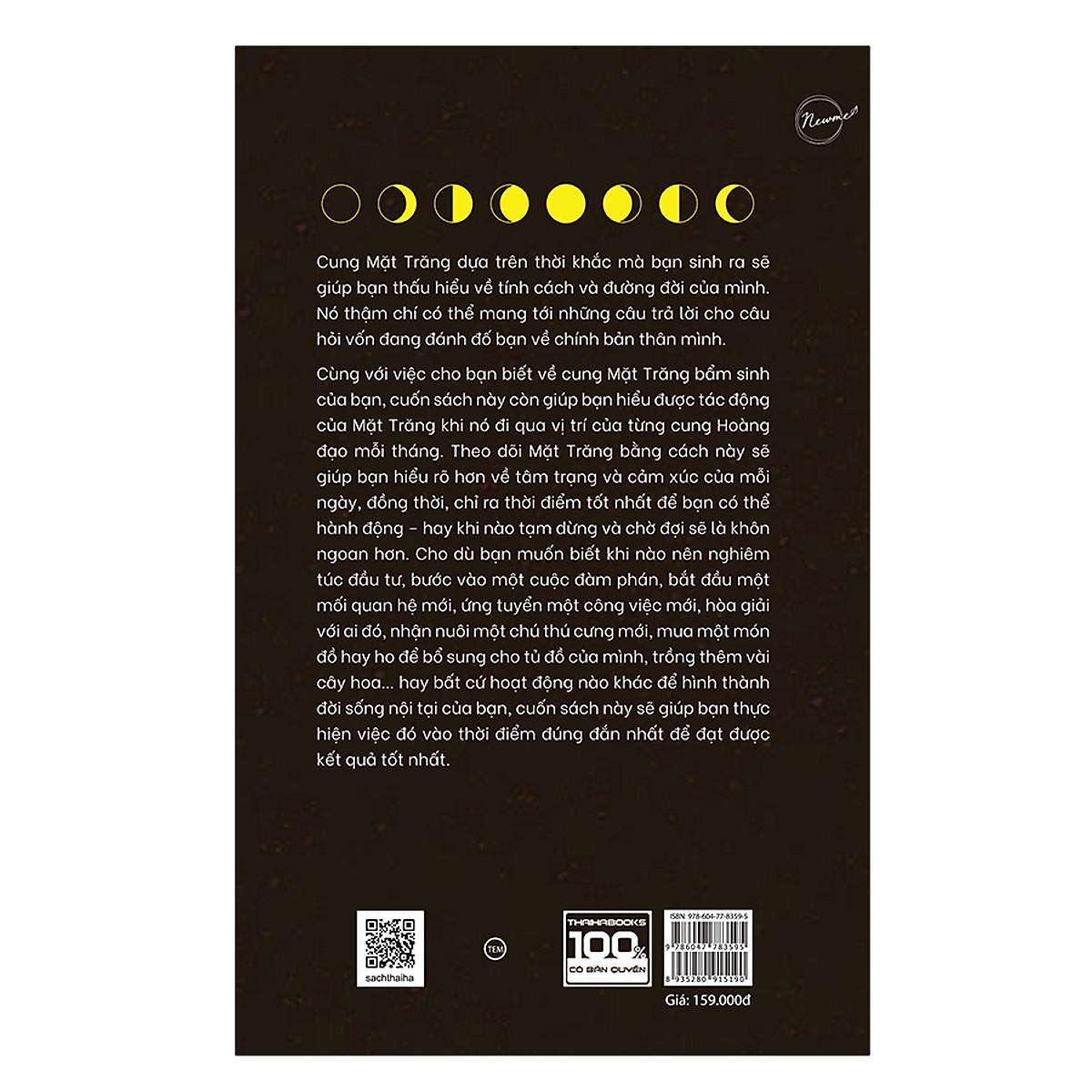 [ThaiHaBooks] Cung Mặt Trăng dựa trên thời khắc mà bạn sinh ra sẽ giúp bạn thấu hiểu về tính cách và đường đời của mình. Nó thậm chí có thể mang tới những câu trả lời cho câu hỏi vốn đang đánh đố bạn về chính bản thân mình. Cùng với việc cho bạn biết về cung Mặt Trăng bẩm sinh của bạn, cuốn sách này còn giúp bạn hiểu được tác động của Mặt Trăng khi nó đi qua vị trí của từng cung Hoàng đạo mỗi tháng. Theo dõi Mặt Trăng bằng cách này sẽ giúp bạn hiểu rõ hơn về tâm trạng và cảm xúc của mỗi ngày, đồng thời, chỉ ra thời điểm tốt nhất để bạn có thể hành động – hay khi nào tạm dừng và chờ đợi sẽ là khôn ngoan hơn. Cho dù bạn muốn biết khi nào nên nghiêm túc đầu tư, bước vào một cuộc đàm phán, bắt đầu một mối quan hệ mới, ứng tuyển một công việc mới, hòa giải với ai đó, nhận nuôi một chú thú cưng mới, mua một món đồ hay ho để bổ sung cho tủ đồ của mình, trồng thêm vài cây hoa… hay bất cứ hoạt động nào khác để hình thành đời sống nội tại của bạn, cuốn sách này sẽ giúp bạn thực hiện việc đó vào thời điểm đúng đắn nhất để đạt được kết quả tốt nhất.