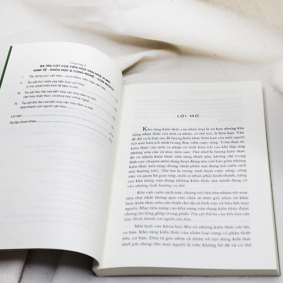 Khi viết cuốn sách này, chúng tôi chủ yếu nhắm tới mục tiêu thứ nhất thông qua việc chia sẻ một góc nhìn và khái lược kiến thức nền cần thiết cho đa số lĩnh vực và hầu hết mọi người. Mục tiêu nâng cao khả năng vận dụng kiến thức được chúng tôi lồng ghép trong phần Trụ cột thứ ba của tiến hóa văn hóa: Hình thành con người văn hóa. Mỗi lĩnh vực khoa học đều có những kiến thức cốt lõi, cơ bản. Kho tàng kiến thức của nhân loại cũng có phần thiết yếu, cơ bản. Đưa ra góc nhìn cá nhân về nội dung kiến thức thiết yếu chung cho mọi người là việc không hề dễ và có thể gây ra những tranh cãi, nhưng chúng tôi tin chắc những chia sẻ này sẽ góp phần khơi gợi ở bạn đọc, đặc biệt là các bạn trẻ, niềm hứng thú tìm tòi, khám phá tri thức. Để phục vụ mục đích này, chúng tôi sẽ tóm lược những kiến thức nền tảng thiết yếu theo quan điểm của mình trên cơ sở hai nội dung chính yếu sau: