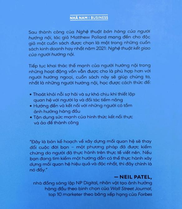 Tác giả: Matthew Pollard và Derek Lewis Dịch giả: Bùi Thu Hà Nhà xuất bản: Thông tấn Số trang: 324 Kích thước: 14 x 20.5cm Ngày phát hành: 2023 Giới thiệu sách Sau thành công của Nghệ thuật bán hàng của người hướng nội, tác giả Matthew Pollard mang đến cho độc giả một cuốn sách được chọn là một trong những cuốn sách kinh doanh hay nhất năm 2021: Nghệ thuật kết giao của người hướng nội. Tiếp tục khai thác thế mạnh của người hướng nội trong những hoạt động vốn vẫn được cho là phù hợp hơn với người hướng ngoại, cuốn sách này sẽ giúp chúng ta, nhất là những người hướng nội, học được cách thức để: Thoát khỏi nỗi sợ hãi và sự khó chịu khi thiết lập quan hệ với người lạ và đối tác tiềm năng Hướng đến và kết nối với những người có tầm ảnh hưởng hàng đầu Tận dụng sức mạnh của hình thức kết nối thực và ảo để thành công “Đây là bản kế hoạch về xây dựng mối quan hệ sẽ thay đổi cuộc đời bạn – một phương pháp đã được kiểm chứng do người đã thực sự thực hành nó viết nên. Nếu bạn đang tìm kiếm một hướng dẫn có thể thực hành xây dựng mối quan hệ hiệu quả và độc nhất, thì đây chính là nó đấy.” - Neil Patel, nhà đồng sáng lập NP Digital, nhân vật tạo ảnh hưởng hàng đầu theo bình chọn của Wall Street Journal, top 10 marketer theo bảng xếp hạng của Forbes Matthew Pollard là người sáng lập và CEO của Rapid Growth, một doanh nghiệp có mục tiêu giúp mọi doanh nghiệp ở mọi quy mô đạt được tỷ lệ thu hồi vốn đầu tư cao nhất; khách hàng của Matthew có nhiều công ty nằm trong danh sách Fortune 500. Hiện nay, Forbes gọi anh là “chuyên viên sales độc nhất vô nhị”, Global Gurus đưa anh vào tốp 30 chuyên viên bán hàng đỉnh cao, tạp chí Top Sales World xếp anh nằm trong tốp 50 diễn giả hàng đầu. Tuy vậy, đam mê thực sự của Matthew là giúp các chủ doanh nghiệp nhỏ giảm bớt căng thẳng và xét đoán, tìm ra con đường đạt tới tăng trưởng nhanh chóng. Đến nay, các phương pháp của anh đã làm thay đổi hơn 3.500 doanh nghiệp trên khắp thế giới. “Matthew Pollard đang trở thành nhà chuyển đổi người hướng nội số 1 nước Mỹ. Tập trung vào giá trị của việc xây dựng mạng lưới quan hệ theo cách của người hướng nội, anh ấy mang đến cho bạn những ý tưởng và chiến lược để đánh bại những người hướng ngoại trong bất kỳ lĩnh vực nào.” - Jeffrey Gitomer, tác giả của Little Red Book of Selling