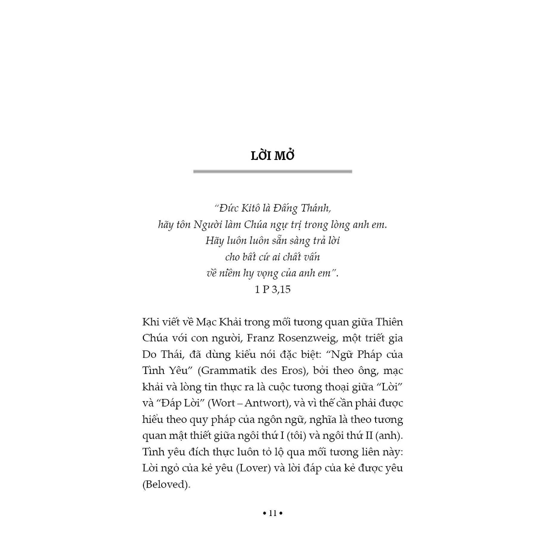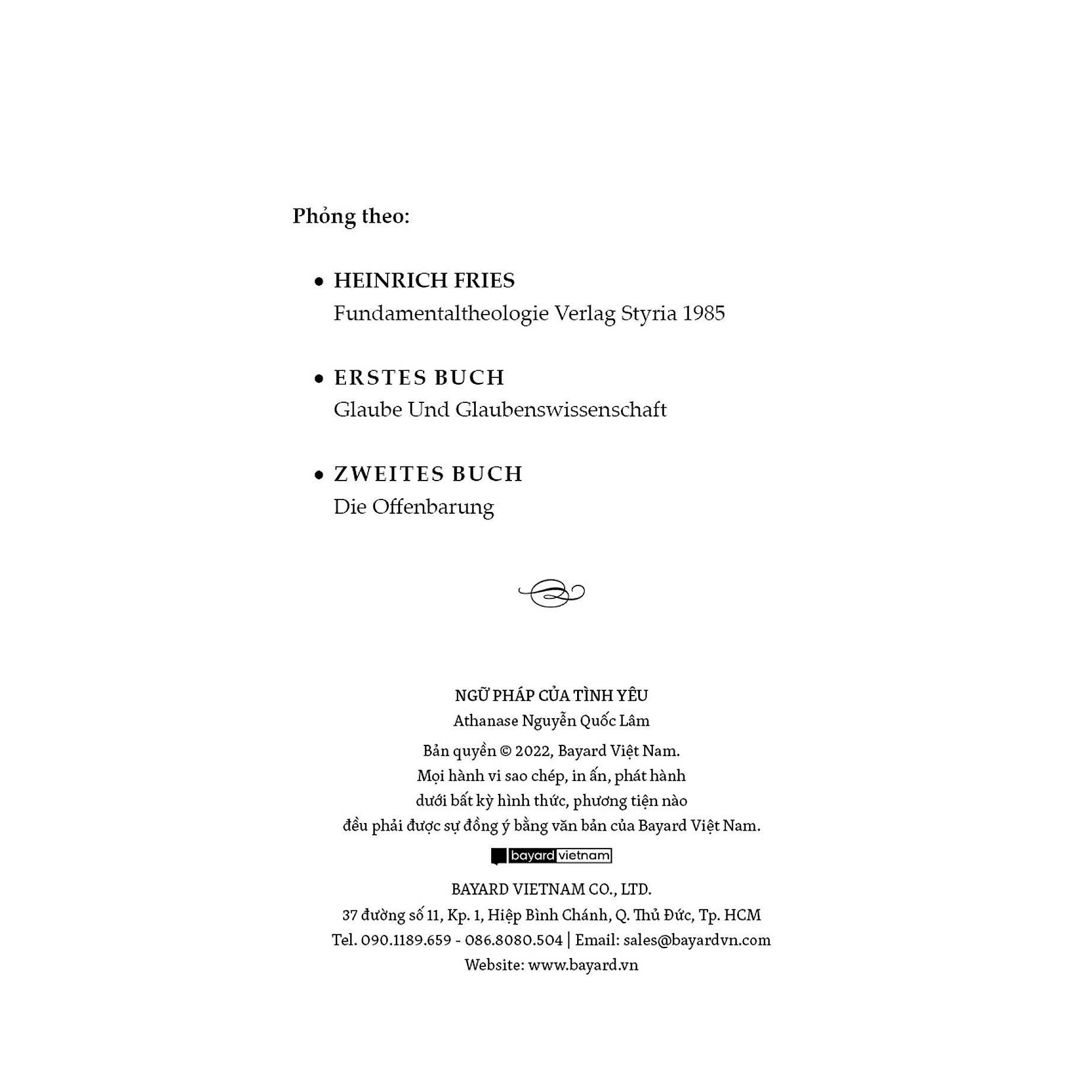 Khi viết về Mạc Khải trong mối tương quan giữa Thiên Chúa với con người, Franz Rosenzweig, một triết gia Do Thái, đã dùng kiểu nói đặc biệt: “Ngữ Pháp của Tình Yêu” (Grammatik des Eros), bởi theo ông, mạc khải và lòng tin thực ra là cuộc tương thoại giữa “Lời” và “Đáp Lời” (Wort – Antwort), và vì thế cần phải được hiểu theo quy pháp của ngôn ngữ, nghĩa là theo tương quan mật thiết giữa ngôi thứ I (tôi) và ngôi thứ II (anh). Tình yêu đích thực luôn tỏ lộ qua mối tương liên này: Lời ngỏ của kẻ yêu (Lover) và lời đáp của kẻ được yêu (Beloved). Heinrich Fries, một nhà thần học Đức, cũng đã khai triển hai phần đầu tác phẩm “Thần Học Cơ Bản” (Fundamentaltheologie) của ông theo hướng này: “Tin” căn bản là thái độ lắng nghe, đáp lời và Mạc Khải chính là “Lời” của Thiên Chúa chờ đợi được lắng nghe, đáp trả. “Ngữ Pháp của tình yêu” được biên soạn như một phỏng tác dựa trên cuốn I và II trong tác phẩm “Thần Học Cơ Bản” (Fundamentaltheologie) của Heinrich Fries, với mong ước cho thấy Đức Giêsu Kitô vừa là tột đỉnh của niềm tin vào Thiên Chúa trên bình diện nhân linh vừa là sự hoàn tất mạc khải tình yêu của Thiên Chúa dành cho nhân loại. Nói đúng hơn, Đức Kitô chính là Lời trọn vẹn của Thiên Chúa (Wort) và cũng chính Đức Kitô mang lấy mọi người và từng người chúng ta trong Lời Đáp (Antwort) trọn vẹn của Ngài trên Thập Giá.