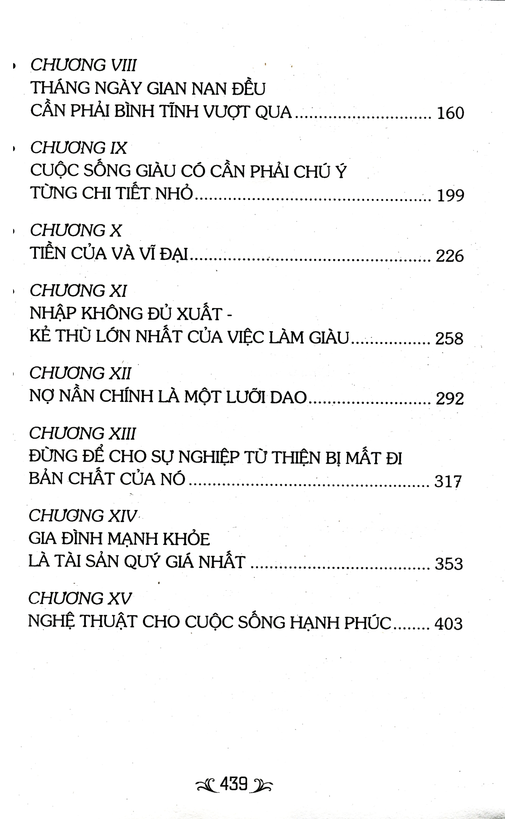 Cuốn sách" Người giàu đều nghĩ như thế" đã được tiết lộ cho chúng ta nguyên nhân dễ dàng phát hiện được sự thật: cuộc sống của những người giàu có đều không giống nhau, nhưng tư tưởng của họ đều có điểm xuất phát giống nhau. Người giàu đề cao tiết kiệm, vì họ tin rằng, tiết kiệm có thể phòng tránh được sự nghèo khổ, có thể giúp họ kiên trì đến cùng trong khó khăn; người giàu biết được tiền của họ có thể tích lũy dựa vào lao động và trí tuệ, vì thế họ không tin vào câu truyện cổ tích " giàu lên qua một đêm"; người giàu luôn luôn có thể nắm bắt được tất cả những cơ hội trong cuộc sống , còn có điểm khác biệt lớn nhất giữa người giàu và người nghèo họ kịp thời nắm bắt được những cơ hội trong cuộc đời; người giàu đều có thể duy trì được tâm thái thành công tích cực.