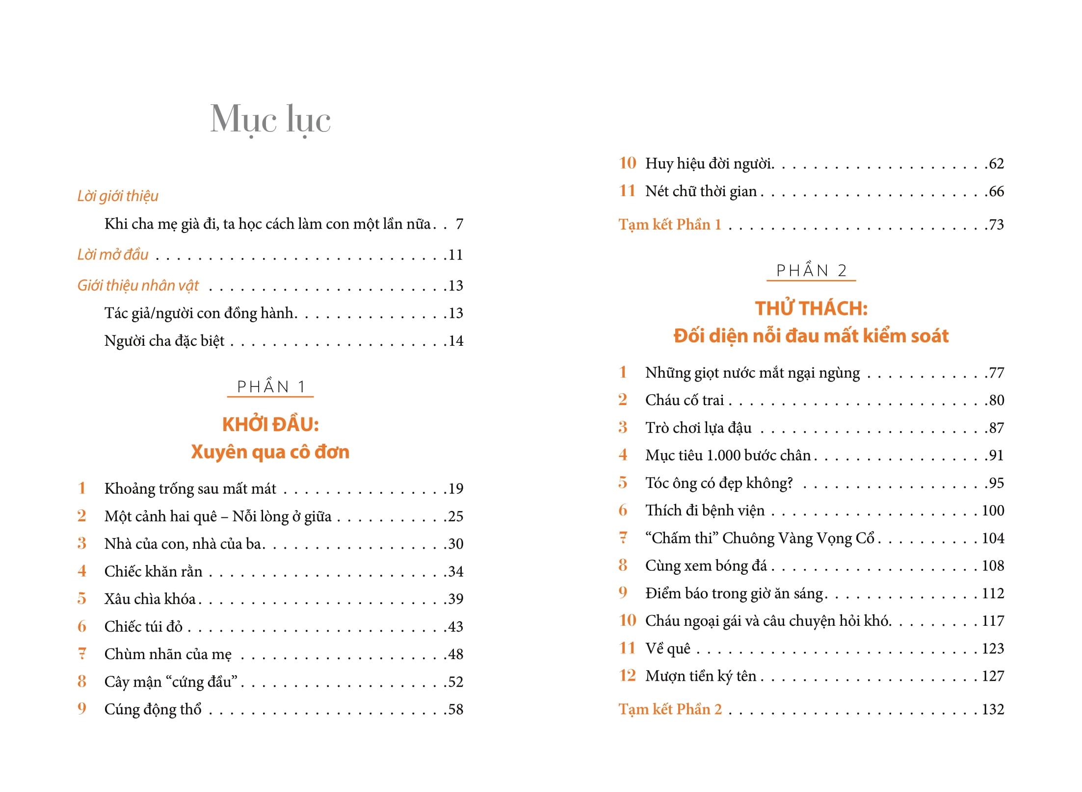 Tác giả đã bước vào cuộc sống của cha, cùng ông tập đi, cùng trò chuyện trong khi trí nhớ dần phai nhạt, chia sẻ từng khoảnh khắc khó khăn lẫn niềm hạnh phúc giản dị. Sự đồng hành ở đây không chỉ đơn thuần là hỗ trợ, mà còn là sự sát cánh, đấu tranh và kiên định. Cuốn sách sẽ giúp bạn nhận ra rằng, cha mẹ không chỉ cần con cái ở bên, mà còn cần sự kiên nhẫn, thấu hiểu và những hành động quan tâm chân thành.