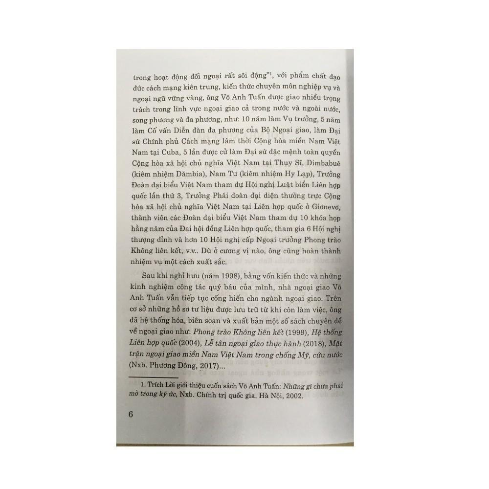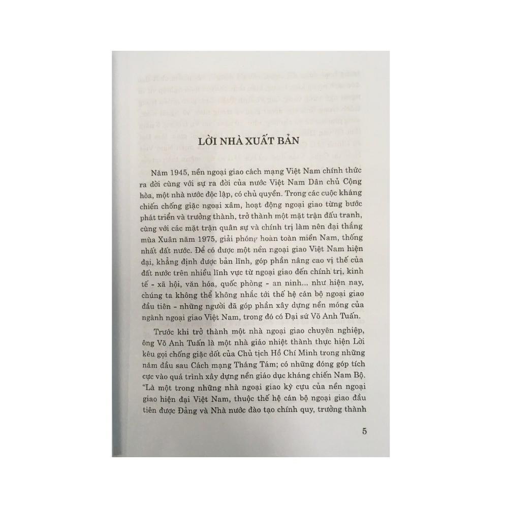 Năm 1945, nền ngoại giao cách mạng Việt Nam chính thức ra đời cùng với sự ra đời của nước Việt Nam Dân chủ Cộng hòa, một nhà nước độc lập, có chủ quyền. Trong các cuộc kháng chiến chống giặc ngoại xâm, hoạt động ngoại giao từng bước phát triển và trưởng thành, trở thành một mặt trận đấu tranh, cùng với các mặt trận quân sự và chính trị làm nên đại thắng mùa Xuân năm 1975, giải phóng hoàn toàn miền Nam, thống nhất đất nước. Để có được một nền ngoại giao Việt Nam hiện đại, khẳng định được bản lĩnh, góp phần nâng cao vị thế của đất nước trên nhiều lĩnh vực từ ngoại giao đến chính trị, kinh tế - xã hội, văn hóa, quốc phòng - an ninh... như hiện nay, chúng ta không thể không nhắc tới thế hệ cán bộ ngoại giao đầu tiên - những người đã góp phần xây dựng nền móng của ngành ngoại giao Việt Nam, trong đó có Đại sứ Võ Anh Tuấn.