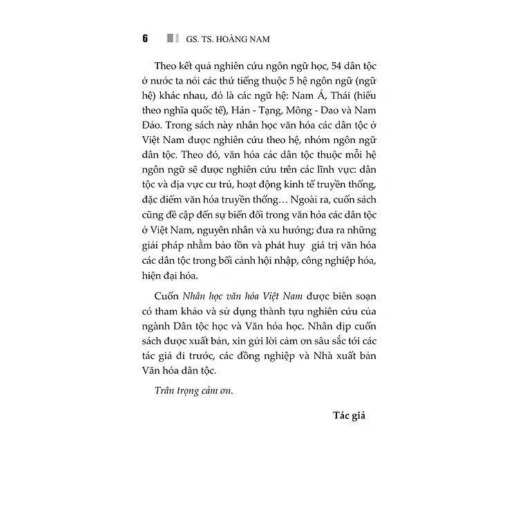 Cuốn sách Nhân học văn hóa Việt Nam mà độc giả đang có trên tay trình bày một cách khái quát những nội dung cơ bản về Nhân học văn hóa Việt Nam theo cách tiếp cận dân tộc ngôn ngữ học.