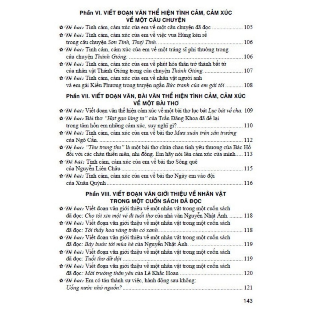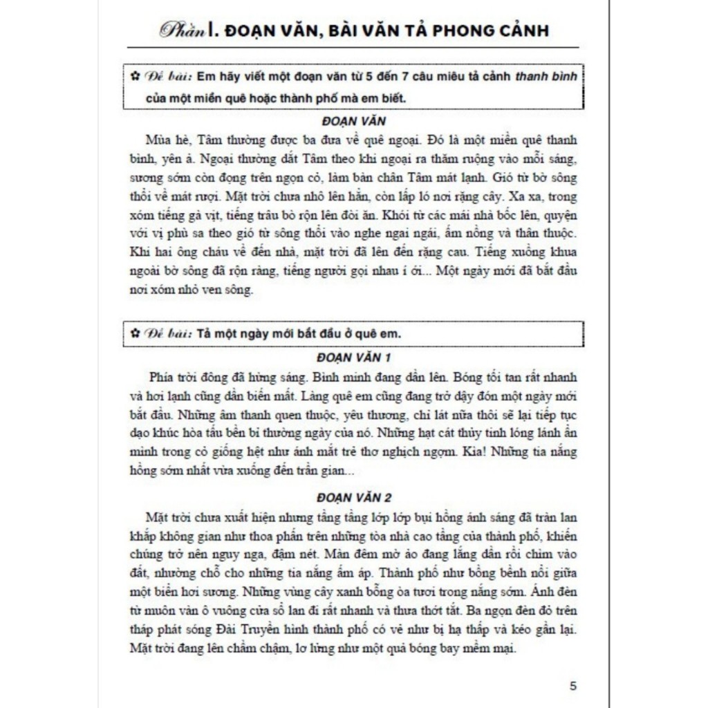 Với nội dung khá phong phú, đa dạng, tác giả hi vọng cuốn sách sẽ bổ ích đối với các em học sinh. Những bài văn trong cuốn sách này, các em nên dùng để tham khảo, không nên phụ thuộc vào các bài văn đó. Những kinh nghiệm rút ra được khi đọc các bài làm kết hợp với năng lực sáng tạo của tư duy sẽ giúp các em viết được những đoạn văn hay, làm được những bài văn đặc sắc.