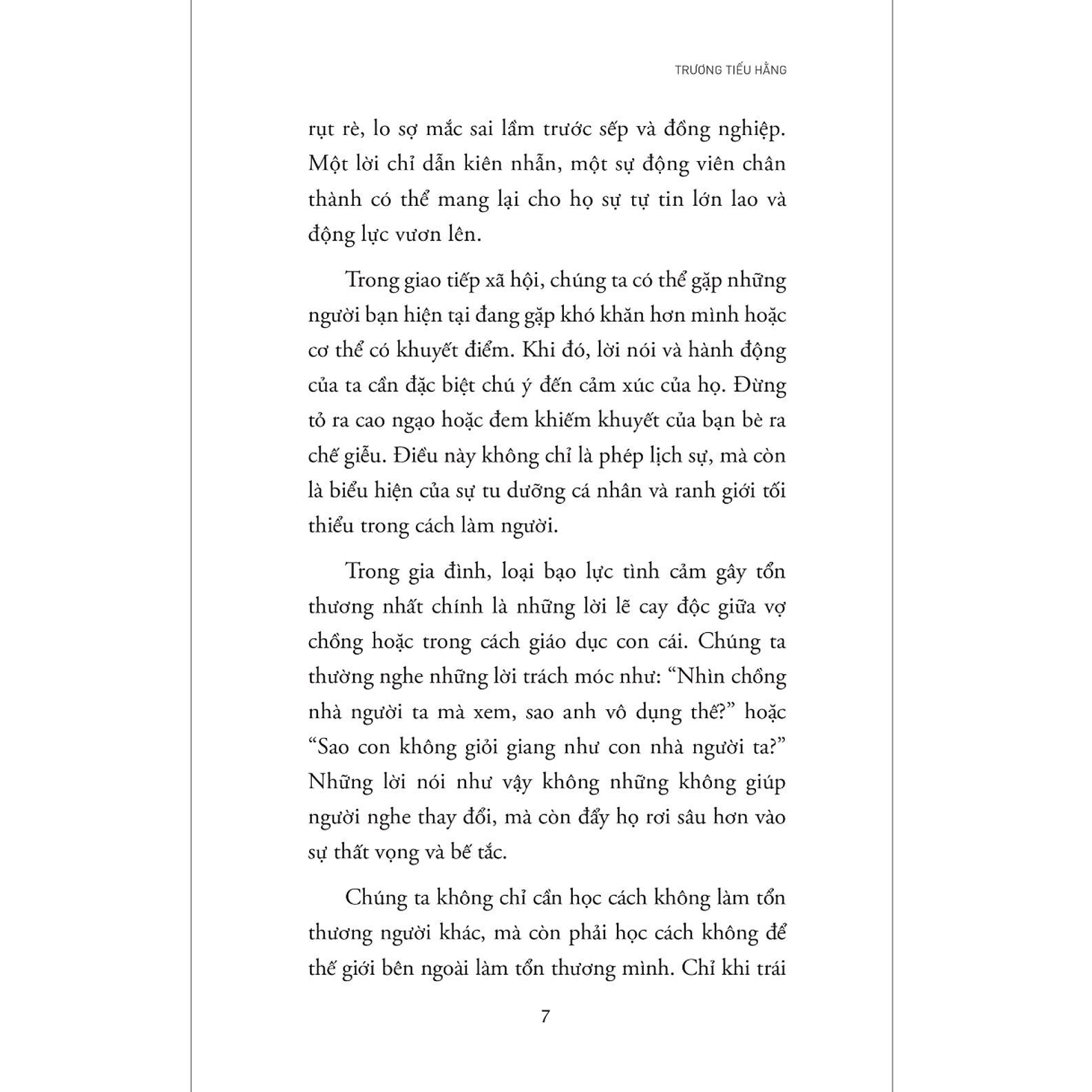 Với lối viết giàu triết lý nhưng gần gũi, Trương Tiếu Hằng đưa người đọc đi qua những tầng lớp cảm xúc trong giao tiếp – từ cách bạn thể hiện lời khen, lời từ chối, đến cách bạn giữ im lặng để tránh làm tổn thương người khác. Mỗi chương sách là một bài học thấm thía, giúp bạn: