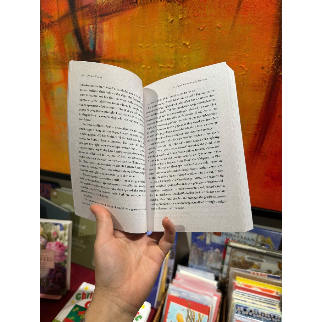 Với sự khẩn trương và duyên dáng đáng kinh ngạc, Ocean Vương viết về những người bị mắc kẹt giữa các thế giới khác nhau và hỏi làm thế nào chúng ta có thể chữa lành và giải cứu lẫn nhau mà không từ bỏ con người thật của mình. Câu hỏi làm thế nào để sống sót và làm thế nào để biến nó thành một loại niềm vui đã tạo nên sức mạnh cho cuốn tiểu thuyết đầu tay quan trọng nhất trong nhiều năm.
