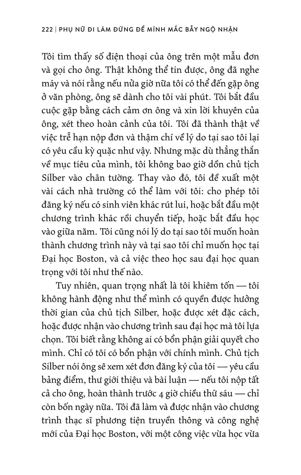 Và không chỉ cho thấy 15 quan niệm đó dẫn dắt phụ nữ đến đâu, tác giả — phó chủ tịch NBCUniversal (một trong những phụ nữ quyền lực của điện ảnh-truyền hình-truyền thông) — đề ra 15 quan điểm đối trọng súc tích, dễ dàng triển khai thành sách lược “phá bẫy ngộ nhận” để tiến lên.