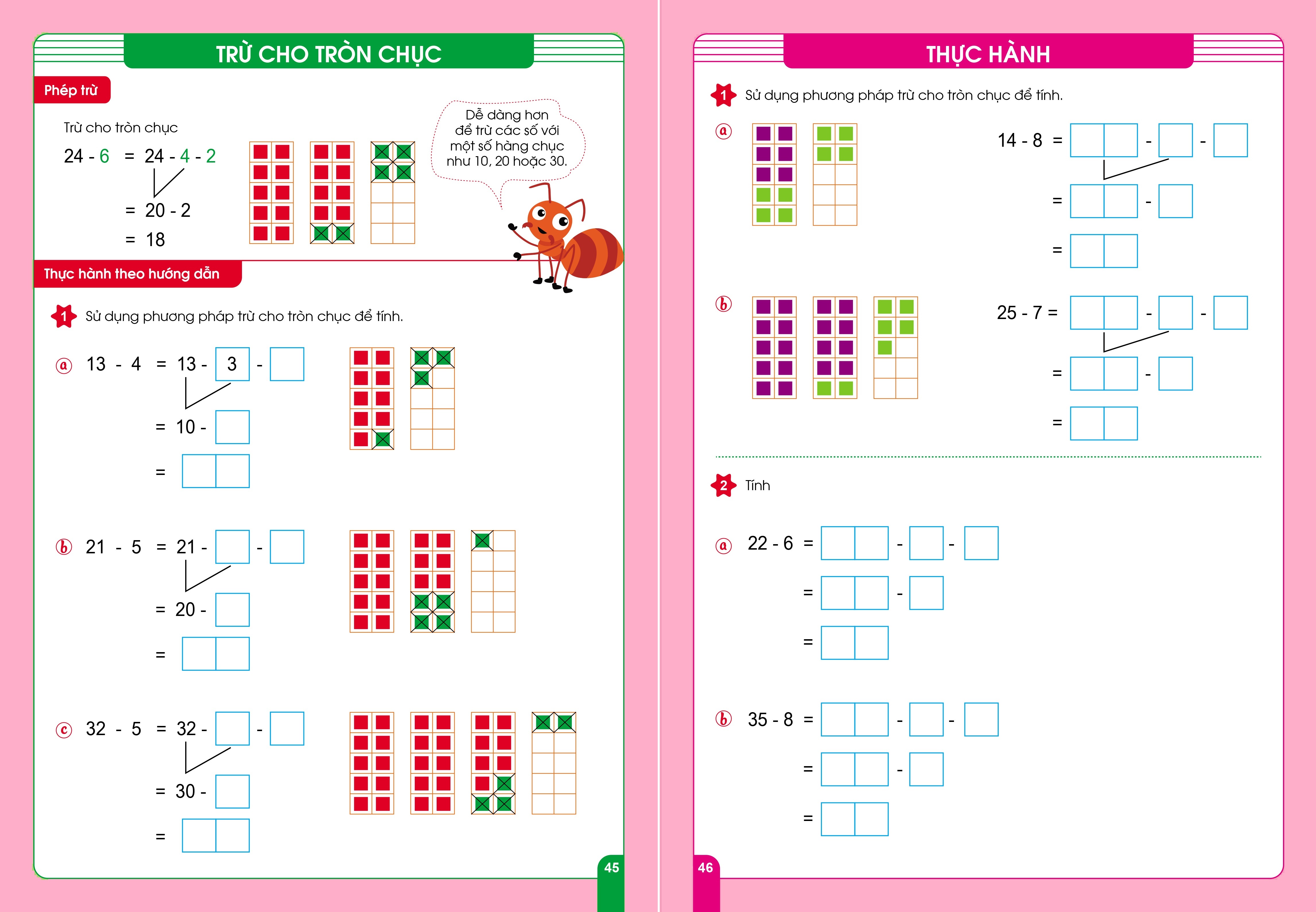 Sách được in khổ to và biên soạn theo sách giáo khoa chương trình mới, nội dung được minh họa nhiều hình ảnh ngộ nghĩnh nhằm thu hút các bé tập trung học và nhìn hình để tư duy nắm bắt kiến thức toán học dễ hiểu hơn, nhớ lâu hơn và hiệu quả tốt hơn.