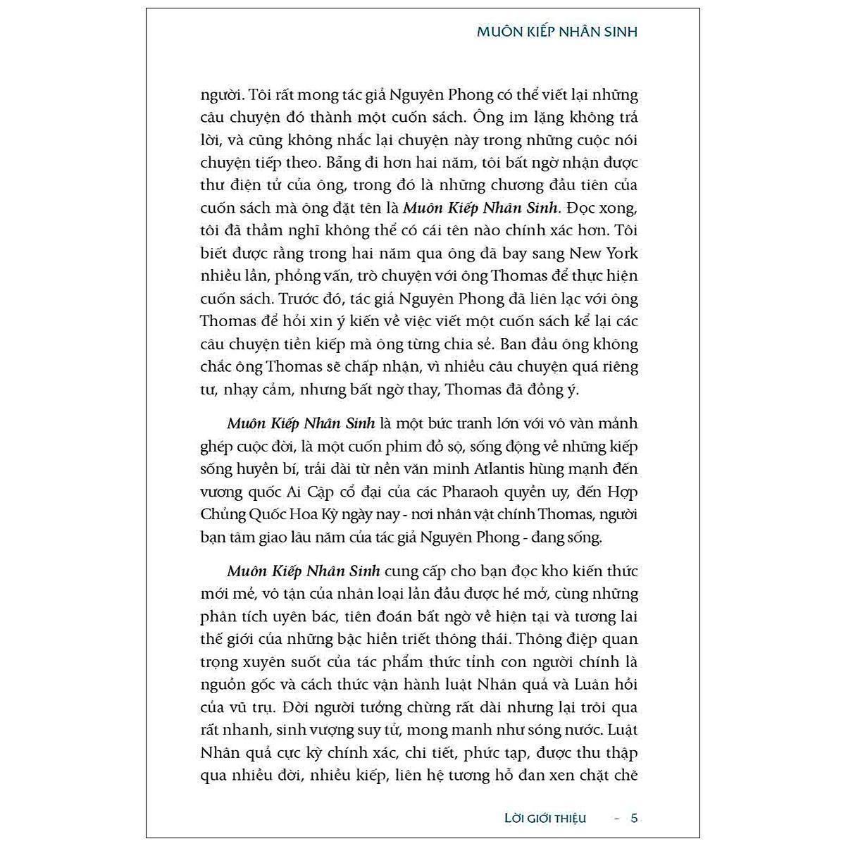 “Muôn kiếp nhân sinh” cung cấp cho bạn đọc kiến thức mới mẻ, vô tận của nhân loại lần đầu được hé mở, cùng những phân tích uyên bác, tiên đoán bất ngờ về hiện tại và tương lai thế giới của những bậc hiền triết thông thái. Đời người tưởng chừng rất dài nhưng lại trôi qua rất nhanh, sinh vượng suy tử, mong manh như sóng nước. Luật nhân quả cực kỳ chính xác, chi tiết, phức tạp được thu thập qua nhiều đời, nhiều kiếp, liên hệ tương hỗ đan xen chặt chữ lẫn nhau, không ai có thể tính được tích đức này có thể trừ được nghiệp kia không, không ai có thể biết được khi nào nhân sẽ trổ quả. Nhưng, một khi đã gây ra nhân thì chắc chắn sẽ gặt quả - luật Nhân quả của vũ trụ trước giờ không bao giờ sai.