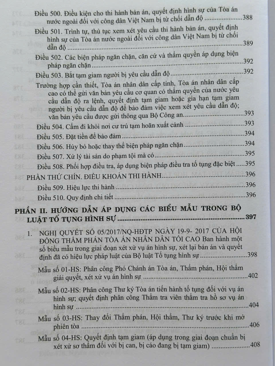 Cuốn sách gồm 9 phần, 510 điều, quy định trình tự, thủ tục tiếp nhận, giải quyết nguồn tin về tội phạm, khởi tố, điều tra, truy tố, xét xử và một số thủ tục