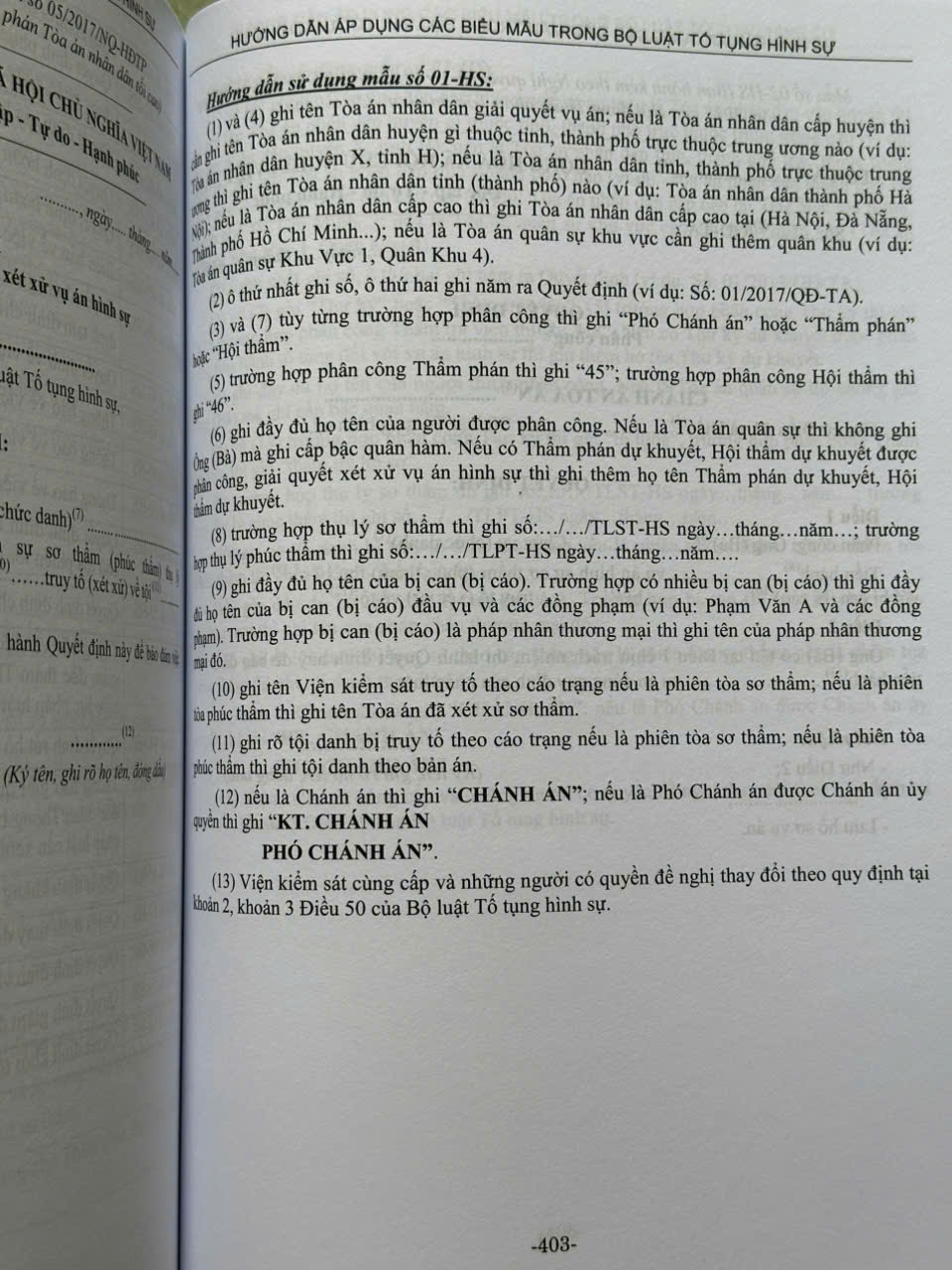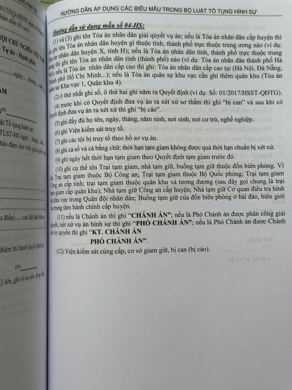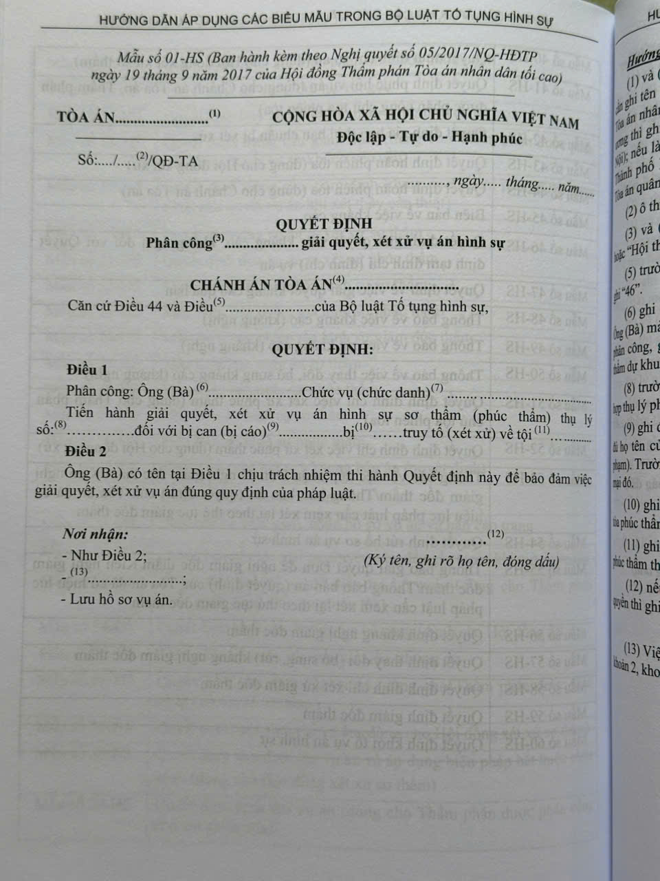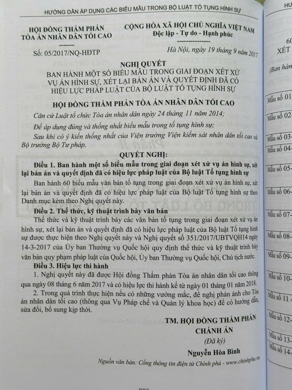 Phần II. Hướng dẫn áp dụng các biểu mẫu trong Bộ luật Tố tụng hình sự