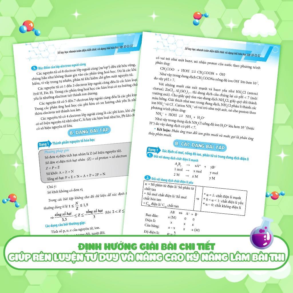 Sổ tay học nhanh toàn diện kiến thức và dạng bài Hóa học lớp 10 – 11 – 12 là cuốn sách tổng hợp toàn bộ kiến thức Hóa học trọng tâm không thể thiếu với các bạn học sinh THPT nếu muốn giành điểm cao môn Hóa Học.